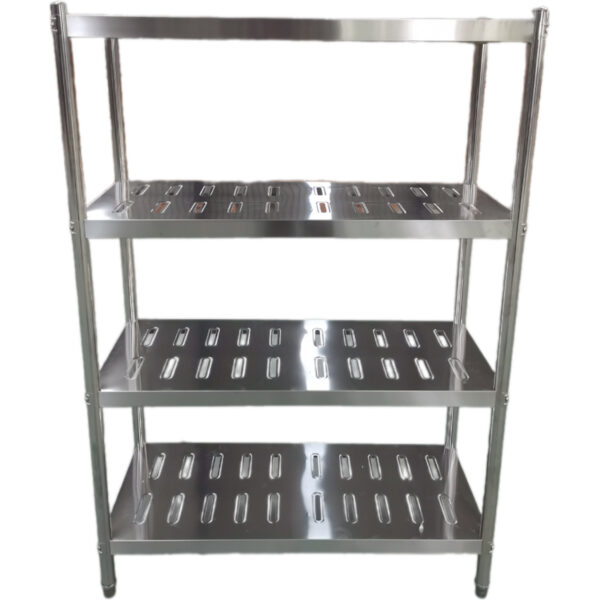 Original price was: 345,71 €.172,86 €Current price is: 172,86 €. (ei sis. KM)Nerūsējošā tērauda plaukti ar apaļām kājām, 4 plaukti ar caurumiem | Adexa QHRSP1205