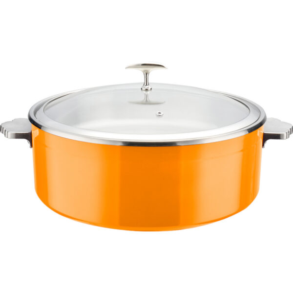 Original price was: 313,18 €.216,10 €Current price is: 216,10 €. (ei sis. KM)Pasniegšanas un sildīšanas katls ar stikla vāku un keramikas ieliktni Trīsslāņu krāsots pārklājums ⌀320x120mm Oranžs | Adexa E0912015M