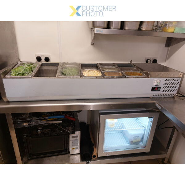 Original price was: 1132,23 €.475,54 €Current price is: 475,54 €. (ei sis. KM)Atdzesēts servēšanas sagatavošanas tops 2200mm 10xGN1/3 dziļums 380mm | Adexa VRX2200380
