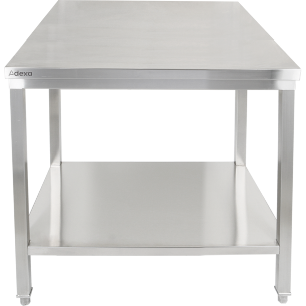 Original price was: 154,95 €.60,43 €Current price is: 60,43 €. (ei sis. KM)Augstvērtīgs komerciāls darba galds Nerūsējošais tērauds Bez apakšējā plaukta 1200x600x980mm | Adexa DW12060WO