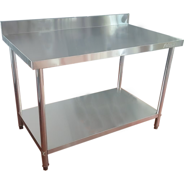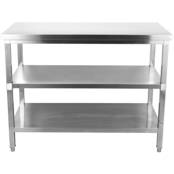 Original price was: 423,36 €.207,45 €Current price is: 207,45 €. (ei sis. KM)Komercdarba galds Zem plaukta Nerūsējošais tērauds Apaļas kājas 1200x700x900mm | Adexa QNH1118