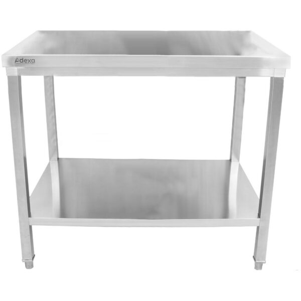 Original price was: 387,15 €.185,83 €Current price is: 185,83 €. (ei sis. KM)Komercdarba galds Nerūsējošais tērauds Ar apakšējo plauktu Aizsargmala 450x700x900mm | Adexa DWT4570