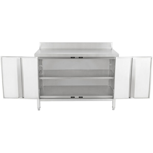 Original price was: 400,51 €.164,21 €Current price is: 164,21 €. (ei sis. KM)Komercdarba virsmas grīdas skapis ar bīdāmām durvīm Nerūsējošais tērauds 1800x600x850mm Mugursiena | Adexa VTC186SLB