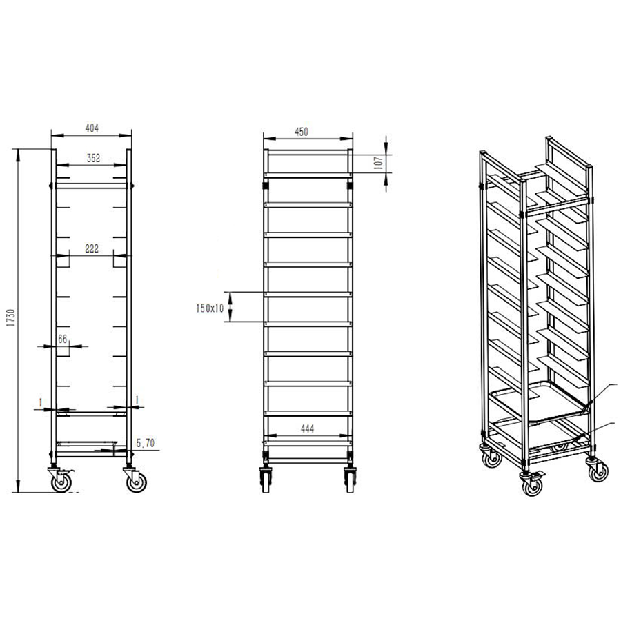 Original price was: 205,74 €.129,62 €Current price is: 129,62 €. (ei sis. KM) Šie augstas kvalitātes profesionālie plauktu ratiņi ir ideāli piemēroti lielu skaitu plāšu vai pannu sakraušanai un glabāšanai. Ratiņi ar 10 līmeņiem ir uzmontēti uz četriem ritenīšiem, lai nodrošinātu vieglu pārvietošanu jūsu restorānā, maiznīcā vai līdzīgā sabiedriskās ēdināšanas uzņēmumā. Plašāka informācija atrodama sadaļā “Specifikācija”. Ir noliktavā