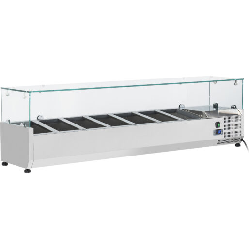 Original price was: 1729,34 €.691,74 €Current price is: 691,74 €. (ei sis. KM)Refrigerated Servery Prep Top 1600mm 7xGN1/4 Depth 330mm Stainless steel lid | Adexa EA16