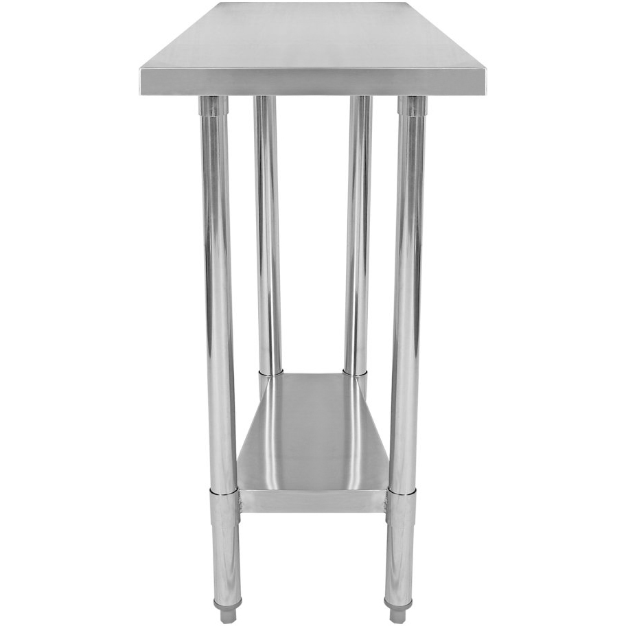 Original price was: 142,11 €.108,00 €Current price is: 108,00 €. (ei sis. KM) Šis izturīgais nerūsējošā tērauda darba galds piedāvā divus līmeņus daudzpusīgai uzglabāšanai un darba telpai. Ar regulējamu apakšējā plaukta augstumu un izturīgām apaļām kājām tas ir izveidots stabilitātei un ērtībai. Izgatavots no SS201 tērauda, to ir viegli tīrīt, un tas ir ideāli piemērots profesionālām virtuvēm vai darba telpām. Ir noliktavā