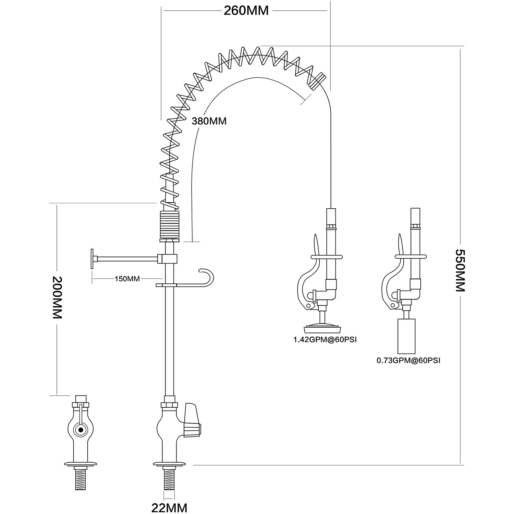 Iepriekšējās skalošanas izsmidzināšanas ierīce, stiprināma uz virsmas, Dubulta ieplūde, Augstums 1000mm, Nerūsējošais tērauds | Adexa EQ2801A