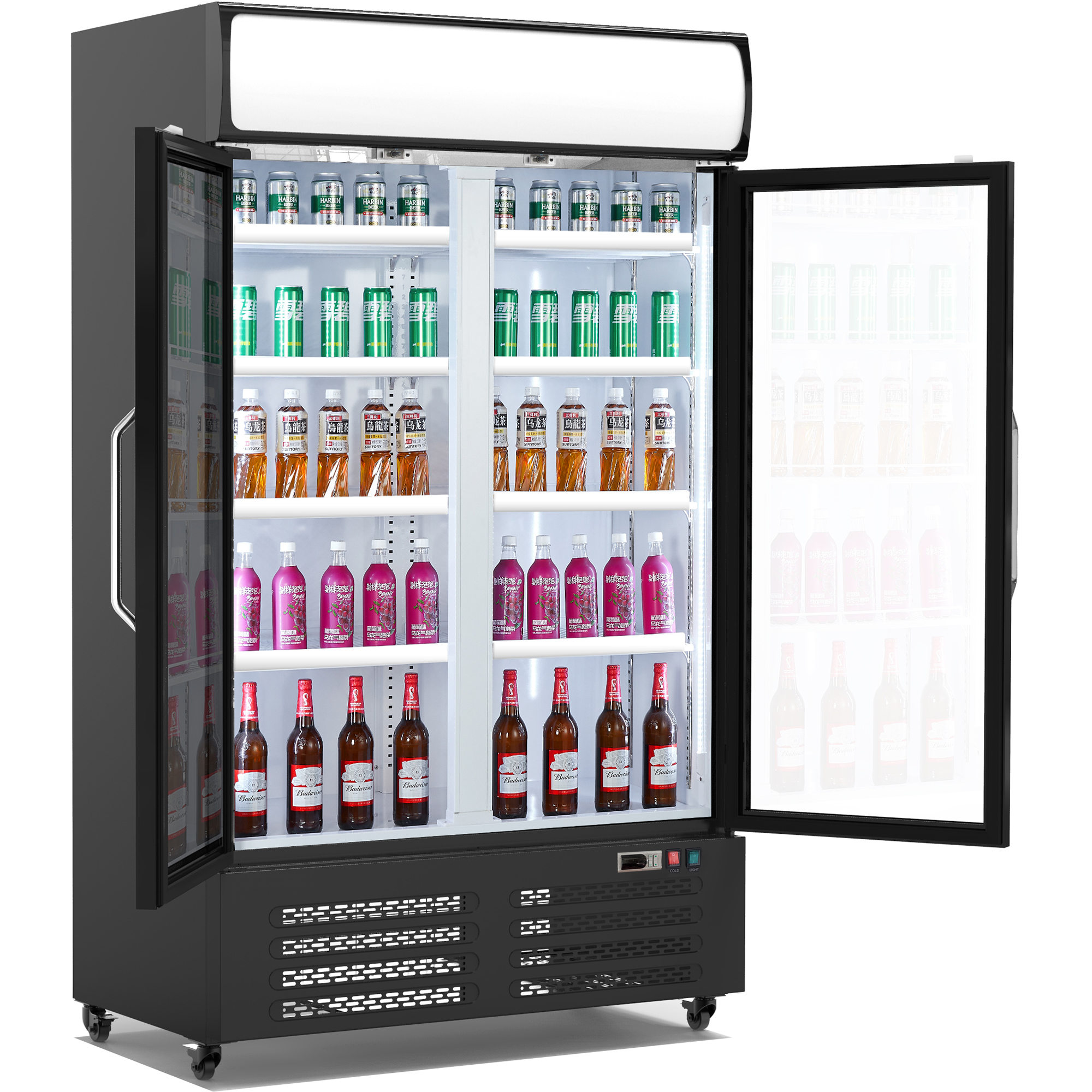 Komerciāls pudeļu dzesētājs Vertikāls 282 litri Statiskā dzesēšana Stikla durvis uz eņģēm Melns/Balts Baldahīna apgaismojums | Adexa LG282B