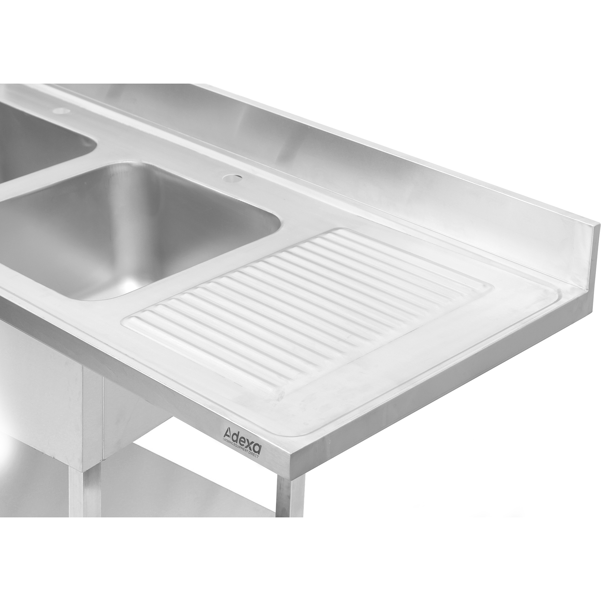 Divkāršā izlietne kreisajā pusē ar noteces virsmu un aizmugurējo sienu 1800x600x910mm | Adexa DSB1860L