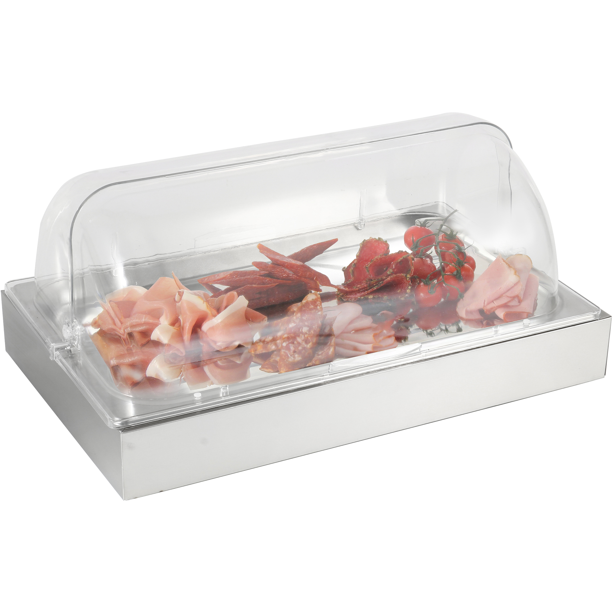 Original price was: 113,65 €.86,38 €Current price is: 86,38 €. (ei sis. KM) Ja jāizstāda ēdiens, bet nevēlaties, lai tas sabojātos, šī roll top dzesešanas plāksne palīdzēs saglabāt ēdienu svaigu. Ledus iepakojums zem paplātes uztur plāksnes saturu svaigāku eksponēšanas laikā, padarot to ideāli piemērotu sviestmaizēm vai citiem pusdienu ēdieniem. Caurspīdīgais plastmasas vāks piedāvā aizsardzību, vienlaicīgi nodrošinot 360 grādu redzamību, lai cilvēki varētu viegli redzēt, ko viņi vēlas, neatverot vāku vai nepieskaroties ēdienam. Vāks ir veidots ar rullējamu konstrukciju un centrālo rokturi, tāpēc to var viegli pacelt, lai ātri un nekavējoties piekļūtu ēdienam. Ir noliktavā