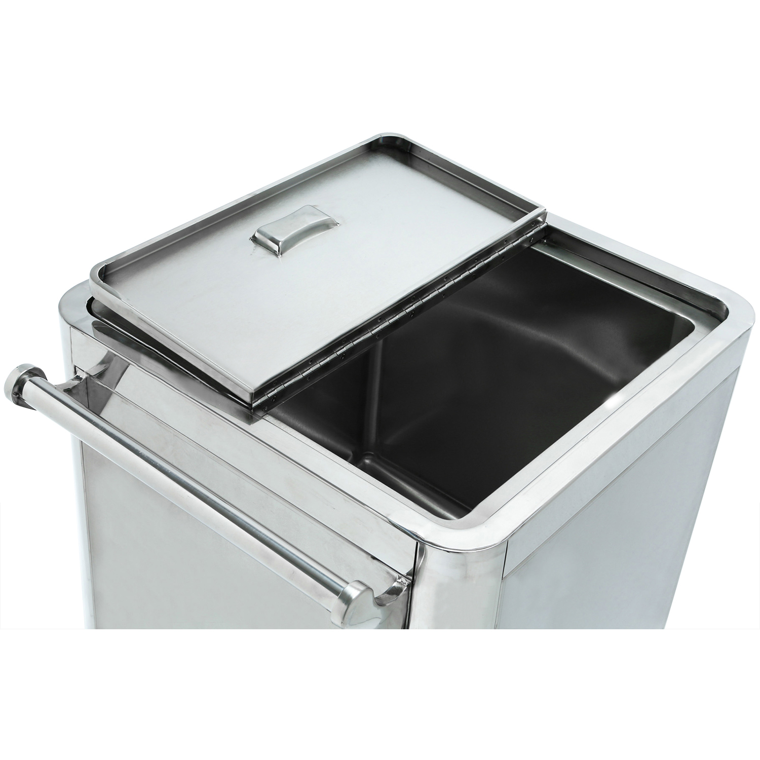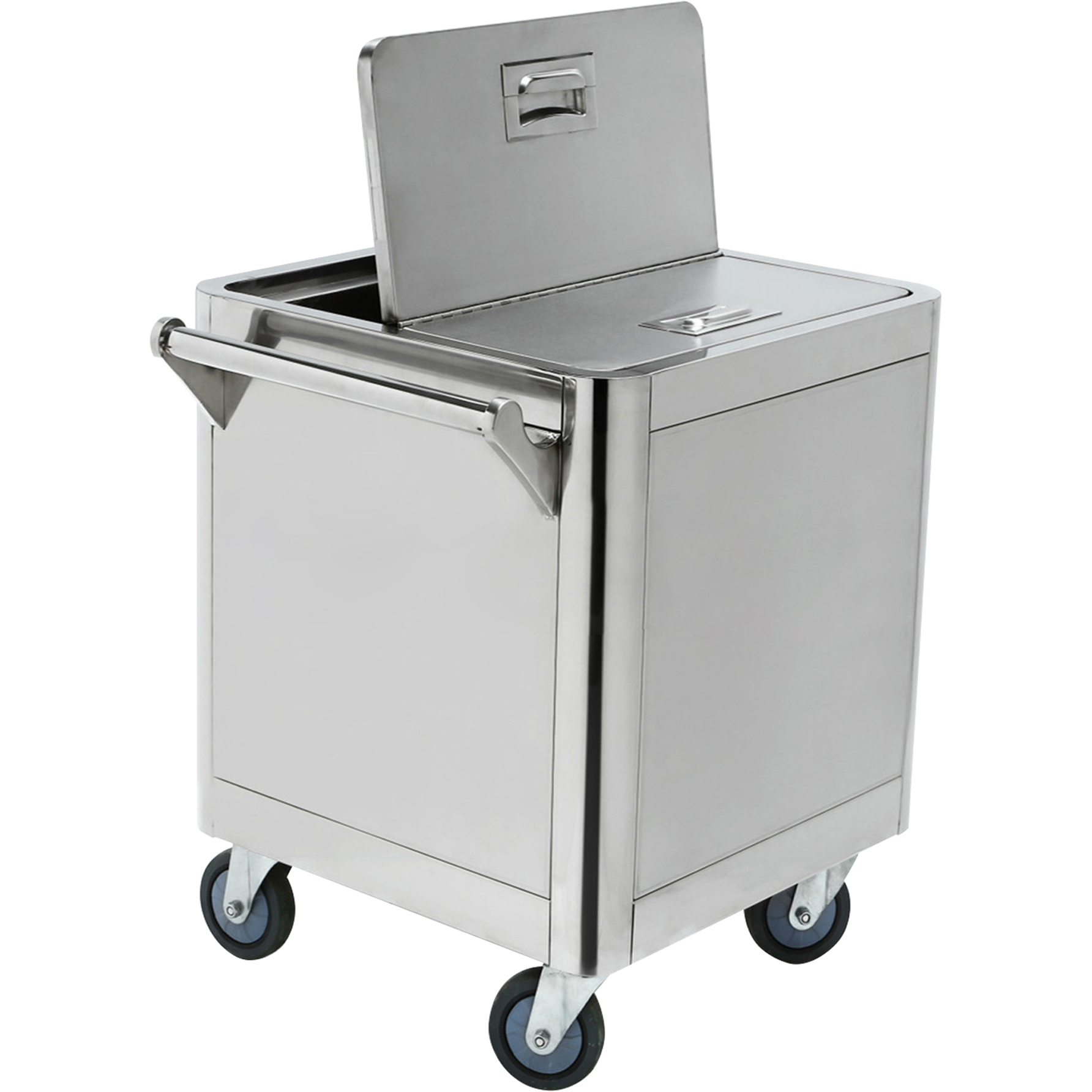 Original price was: 378,19 €.242,04 €Current price is: 242,04 €. (ei sis. KM) Profesionāli nerūsējošā tērauda sastāvdaļu ratiņi ar 4 ritentiņiem. Šo ratiņu vāki ir aprīkoti ar dalītu vāku, kas atveras abās pusēs. Ļoti daudzpusīgi uzglabāšanas ratiņi jebkuram restorānam, viesnīcai vai bāram, kurus viegli var izmantot arī citiem mērķiem. Materiāls: nerūsējošais tērauds Ir noliktavā