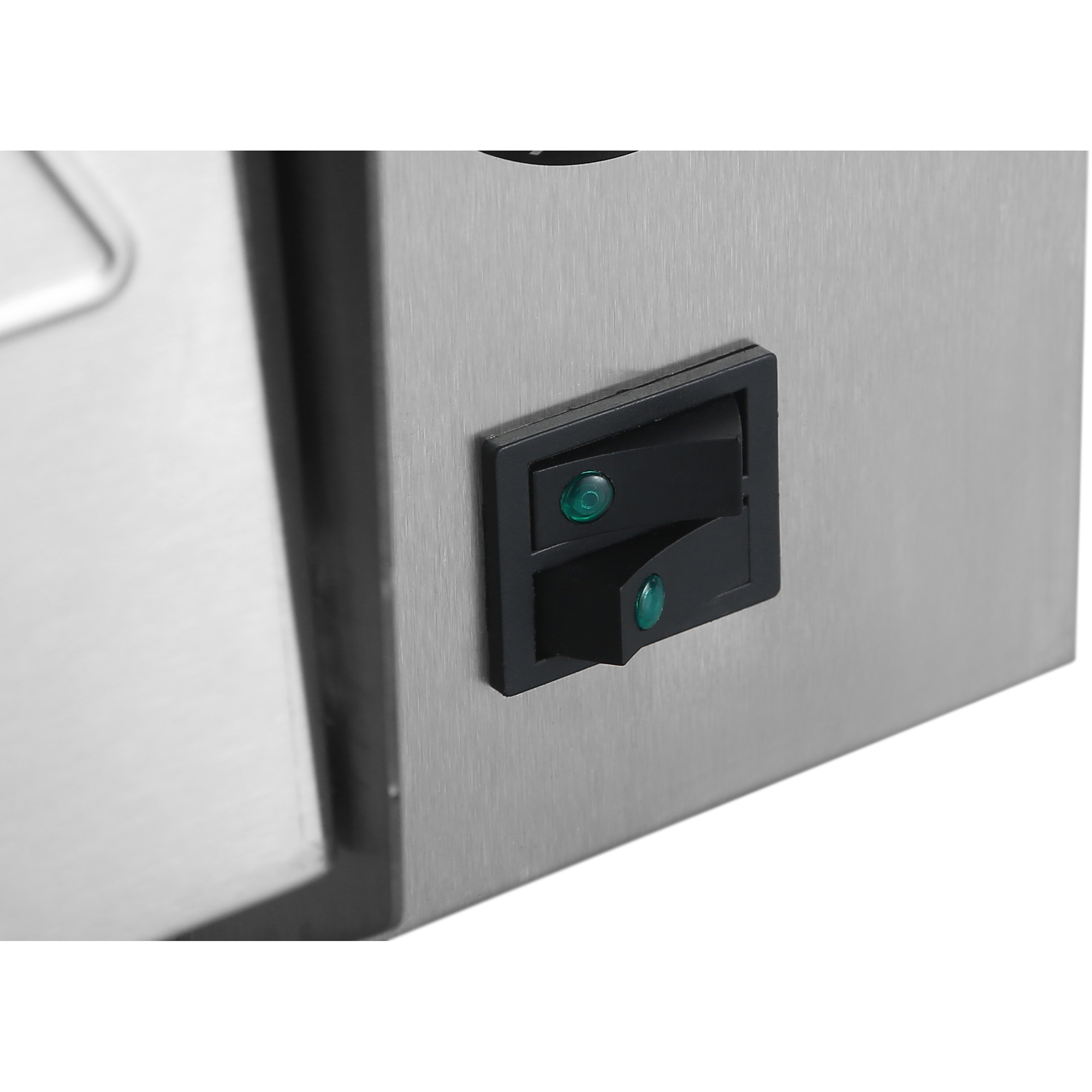 Original price was: 411,56 €.172,86 €Current price is: 172,86 €. (ei sis. KM) Lieliska cenas un kvalitātes attiecība termiski izolētai elektriskajai picu krāsnij, kas labi piemērota mazām picērijām, bāriem un restorāniem. Ugunskurvja akmens ātrai un kraukšķīgai picu, kišu, lazanja un pīrāgu cepšanai. Telpu ietilpīgs picu krāsns, kas piemērots nelielām iznākuma vajadzībām, īpaši noderīgs picas šķēļu vai citu delikatešu produktu uzsildīšanai.1 krāsns kamera 4 picām ar 20 cm / 8 collasPielāgojama temperatūra līdz +350 CIekšējais apgaismojumsĪpaši liels apskates logsViegli tīrāmsĶermenis izgatavots no augstākās kvalitātes nerūsējošā tēraudaStikla šķiedras izolācijaĻoti karstumizturīgsIdeāls cepšanai tieši uz ugunskurvja ķieģeļaElektriskais pieslēgums: 230 Volti / 1N / 50 HzCE/ROHS sertifikācijaSildīšanas metode: augšējā un apakšējā siltumaStandarta Lielbritānijas spraudnisLūdzu, skatiet zem ‘Specifikācijas’ sīki izklāstītai informācijai. Ir noliktavā