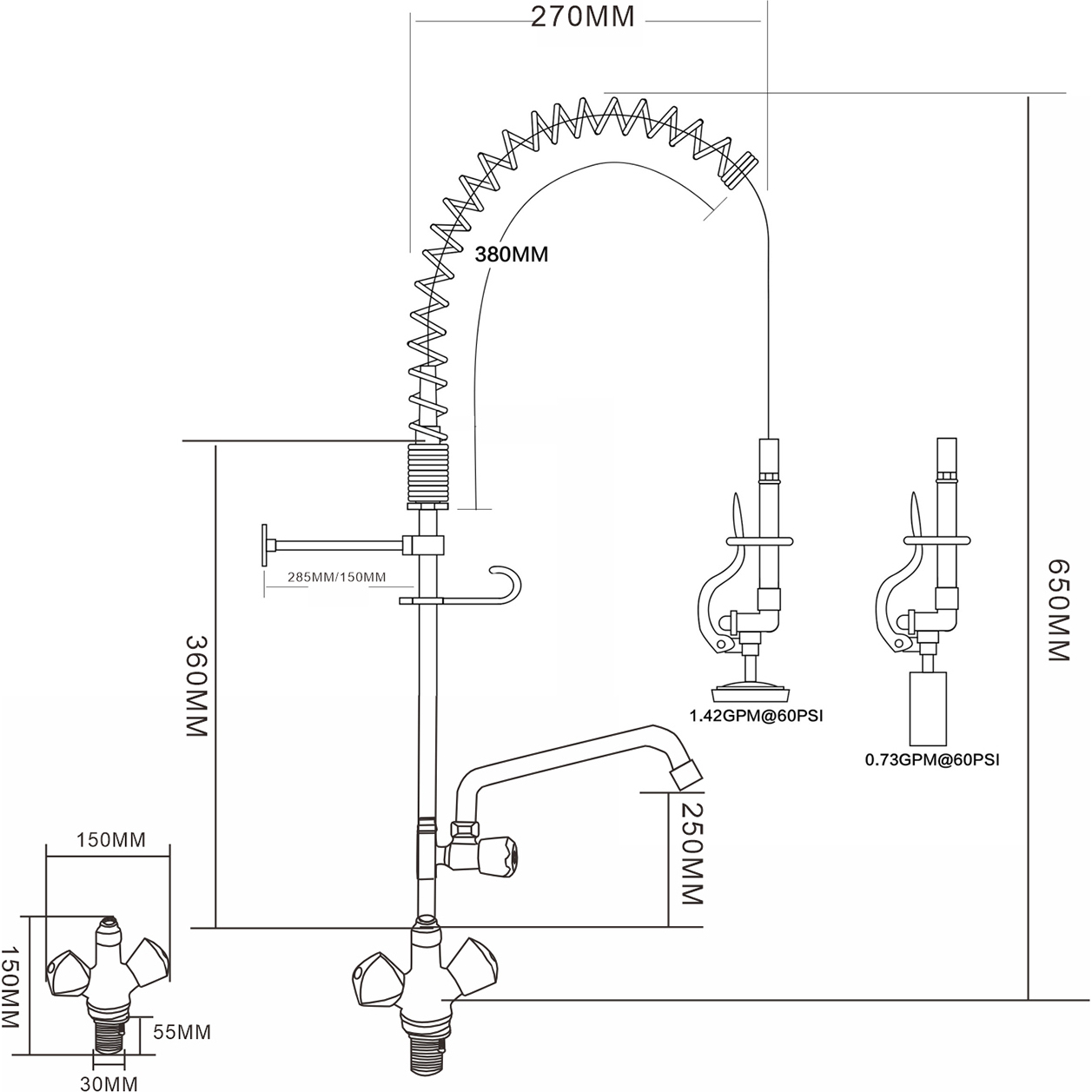 Original price was: 576,22 €.190,15 €Current price is: 190,15 €. (ei sis. KM) Profesionāla un ārkārtīgi izturīga iepriekšējās skalošanas izsmidzināšanas iekārta, ideāli piemērota ēdināšanas, komerckehu, restorānu un viesnīcu lietošanai. Uz sienas montējams tips Divkāršs ieeja (karstais un aukstais ūdens) Smagā tērauda konstrukcija Ir noliktavā