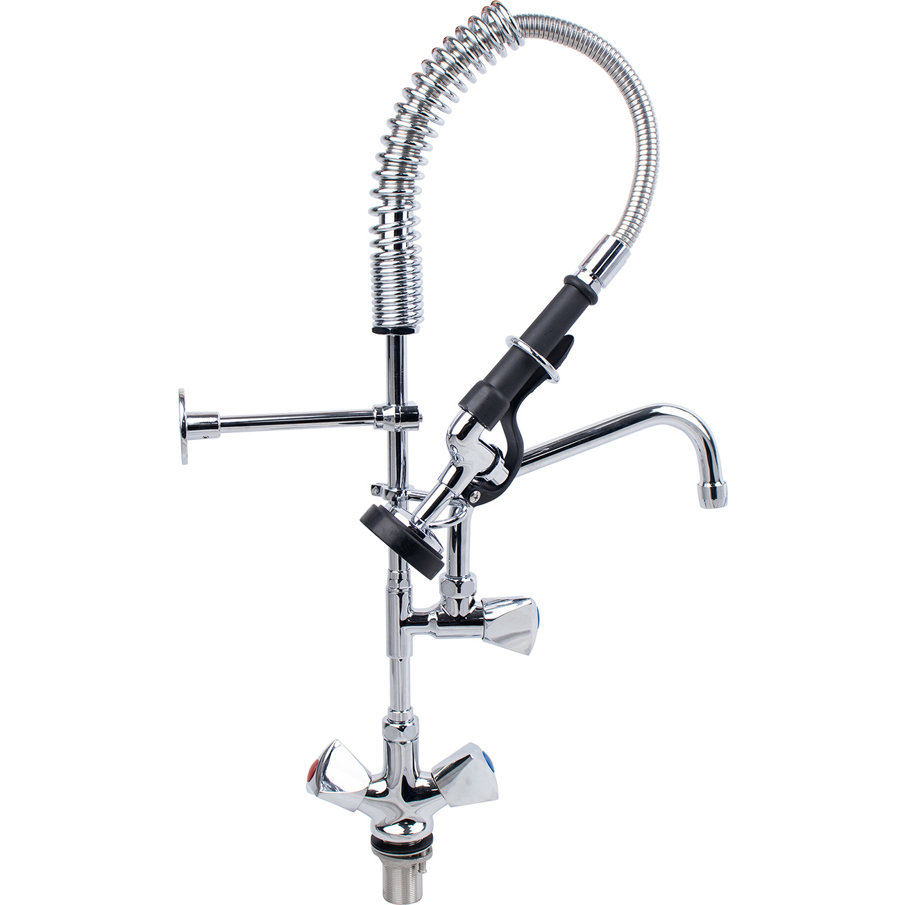 Iepriekšējas skalošanas izsmidzināšanas iekārta ar jaucējkrānu uz galda uzstādāma pagriežama roktura Vienas atveres Dubultā savienojuma Augstums 650mm Atvere 30mm Nerūsējošais tērauds | Adexa 6802A08