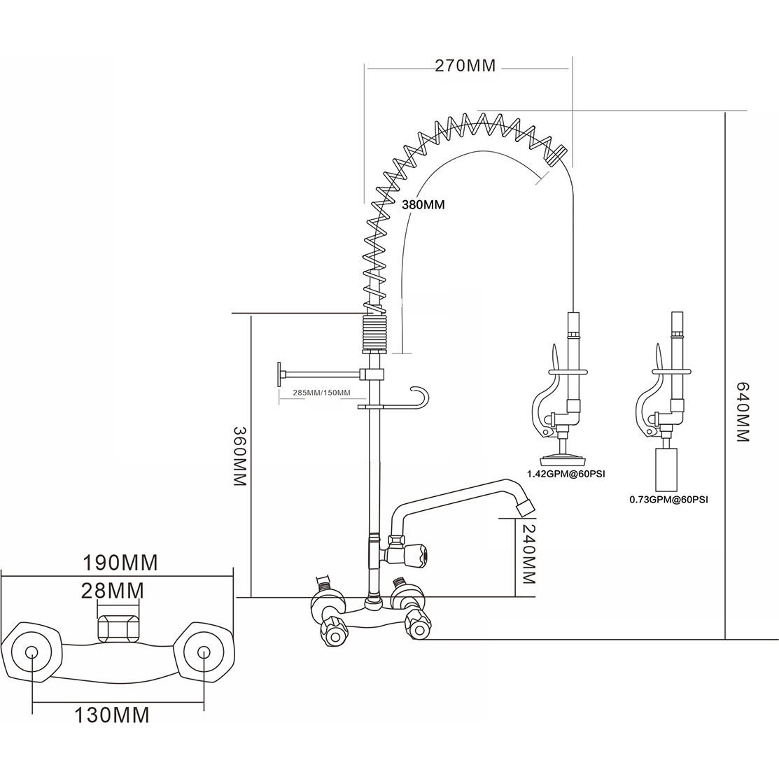 Original price was: 213,18 €.159,88 €Current price is: 159,88 €. (ei sis. KM) Profesionāla un ļoti izturīga iepriekšējās skalošanas smidzināšanas iekārta, ideāli piemērota ēdināšanas pakalpojumiem, komerciālām virtuvēm, restorāniem un viesnīcu lietojumiem. Sienas uzstādāma veida. Dubulta ieeja (karstu un aukstu ūdeni). Izturīga nerūsējošā tērauda konstrukcija. Ir noliktavā