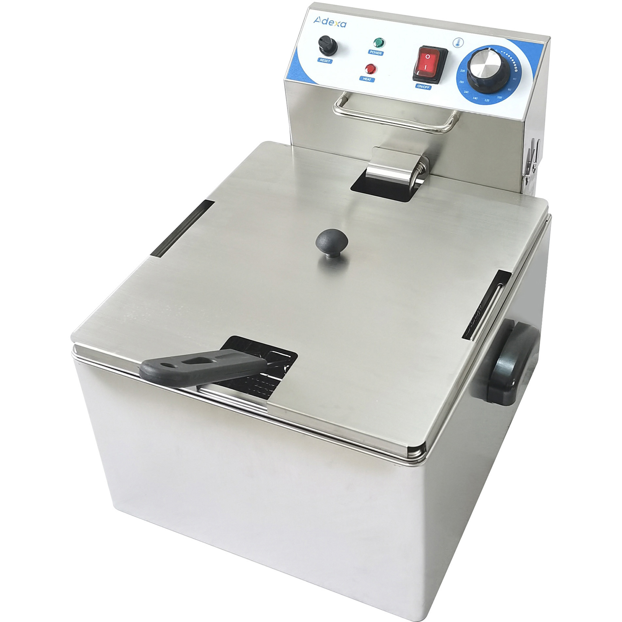 Original price was: 136,28 €.51,78 €Current price is: 51,78 €. (ei sis. KM)Komerciālais fritieris Vienvietīgais Elektriskais 10 litru 2.5kW Galda | Adexa WHCDFS
