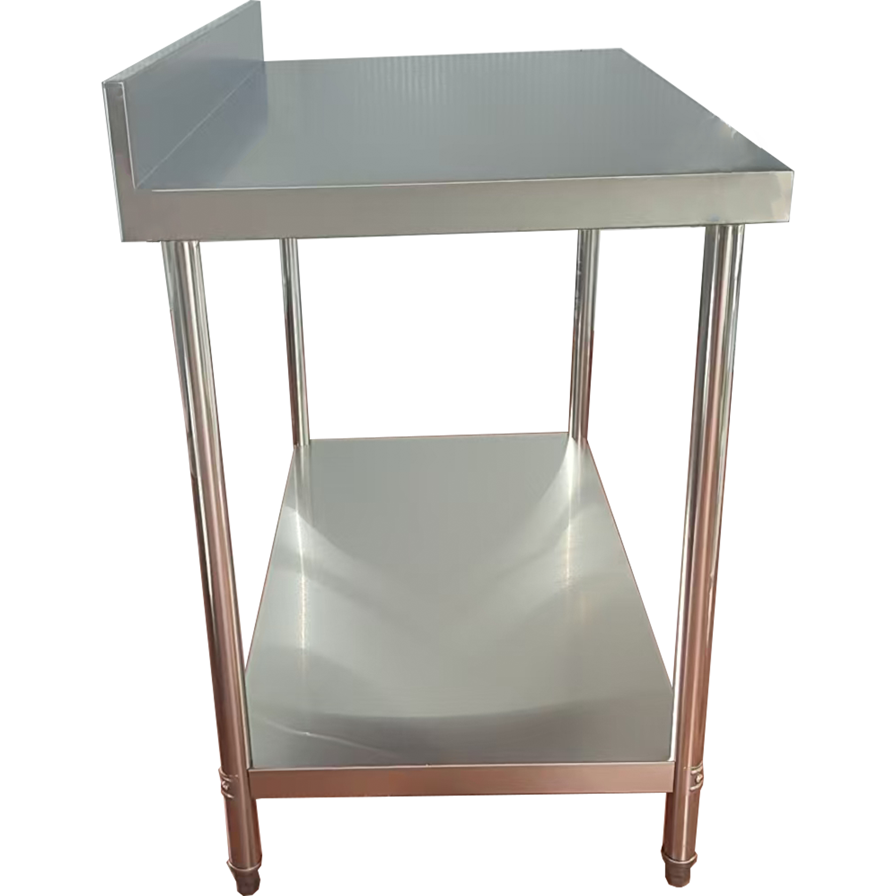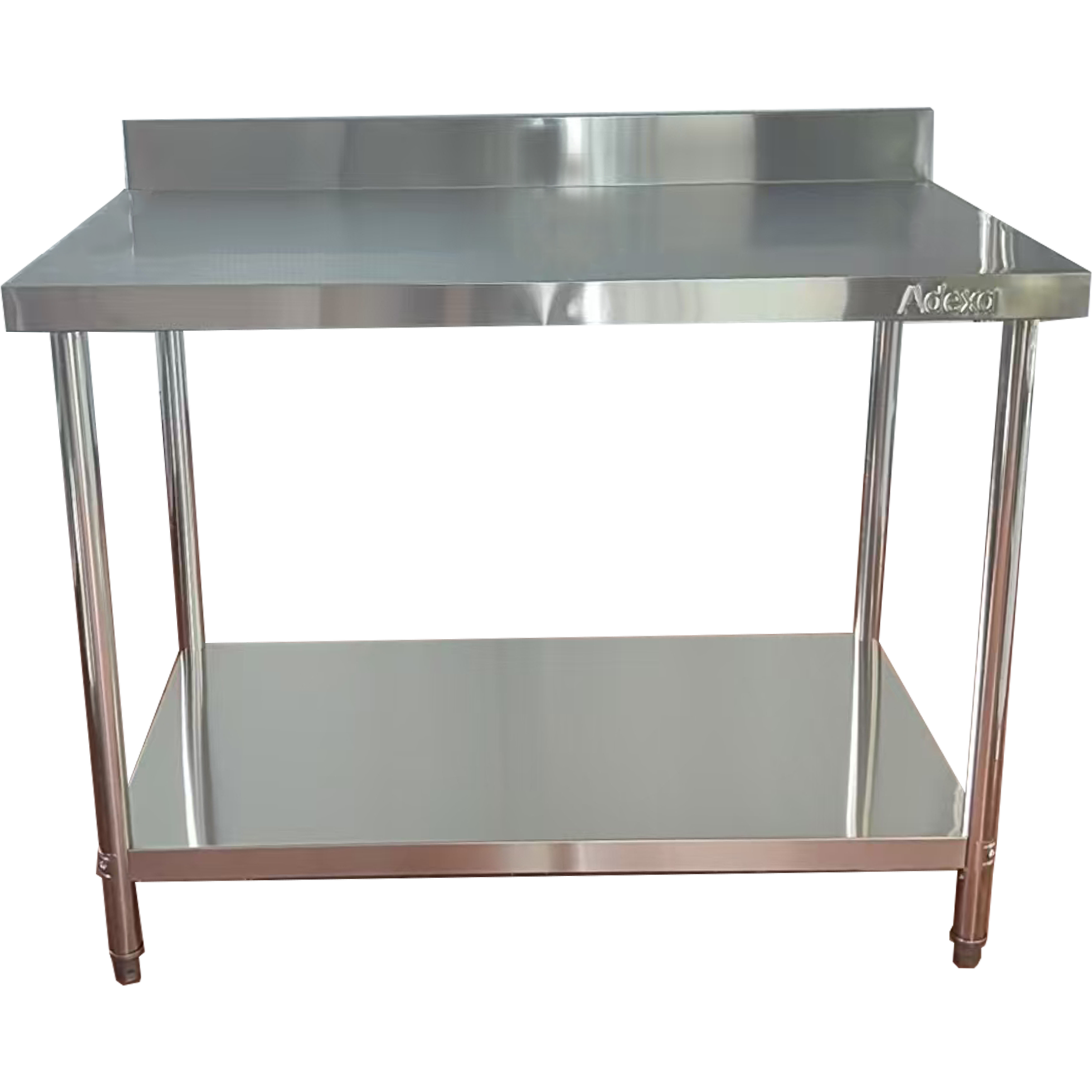 Komerciālais darba galds Ar apakšējo plauktu Aizmugurējais panelis Nerūsējošā tērauda Apaļas kājas 1500x600x900mm | Adexa QNH1144