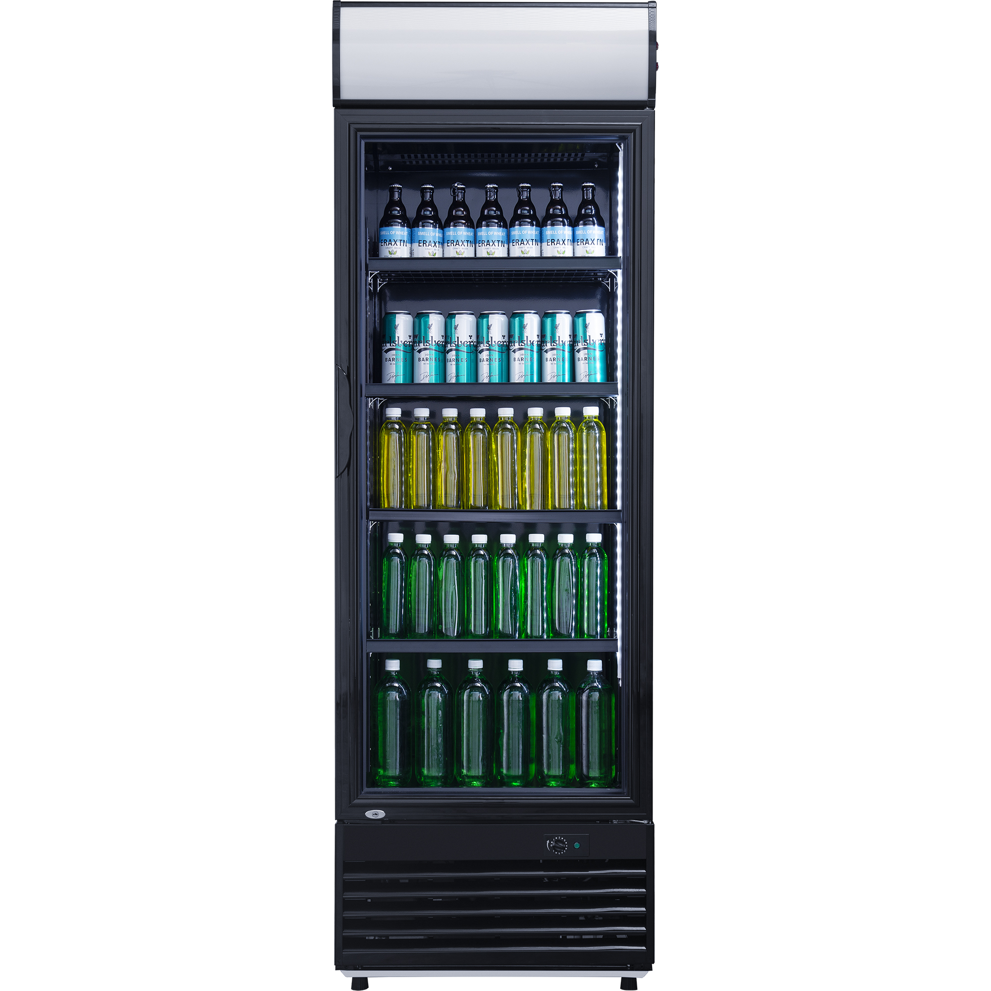Komerciālais dzērienu dzesētājs vertikālais 332 litri statiskā dzesēšana eņģēm aiztaisāmas stikla durvis melns gaismas panelis | Adexa LG332BBLACK