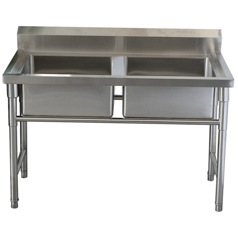 Komerciālais izlietne Nerūsējošais tērauds 1080x600x900mm 2 bļodas Aizmugurējais panelis | Adexa YDRST245A