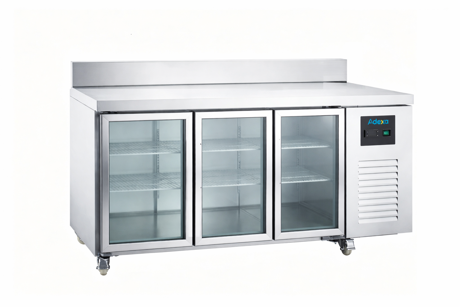 Komerciālais ledusskapja letes skaitītājs ar 3 stikla durvīm GN1/1 un aizmugures paneli | Adexa DRGN3200TNG