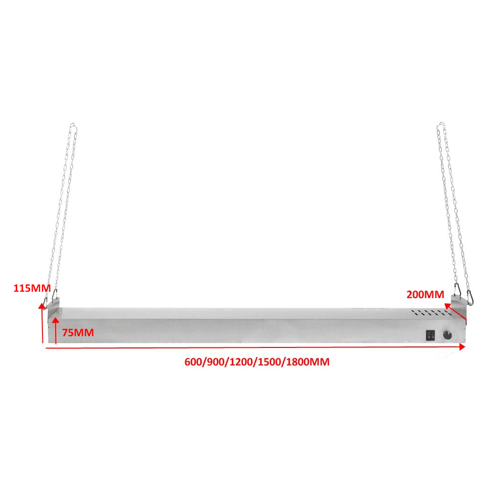 Komerciālais piekaramais portiks ar joslas sildītāju un apgaismojumu un ķēdēm 1500 mm | Adexa XDHHB1500N