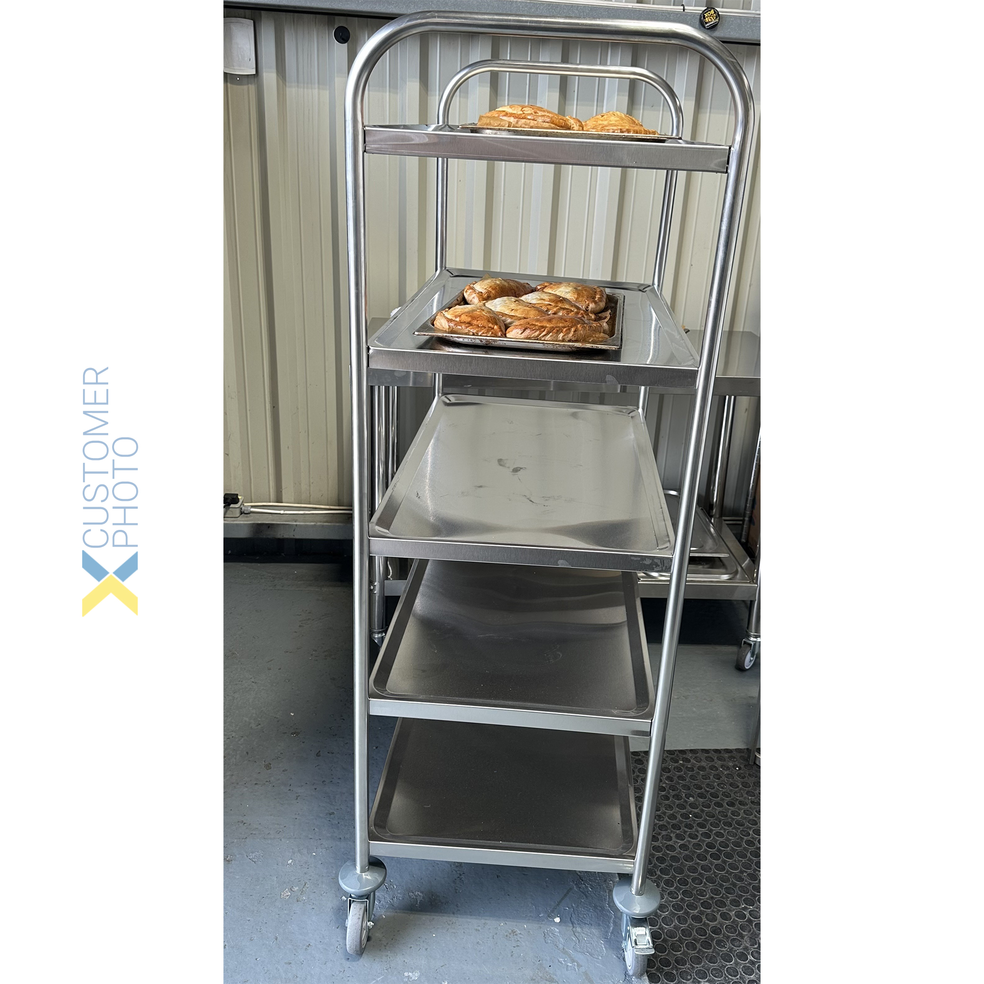 Original price was: 381,88 €.164,21 €Current price is: 164,21 €. (ei sis. KM) Šis servēšanas ratiņš ar piecām izturīgām paplātes virsmām var nemanāmi iekļauties jebkurā vietā. Pateicoties tā robustajai konstrukcijai, tas ir īpaši piemērots lietošanai ēdnīcās, lielapjoma ēdināšanas uzņēmumos, restorānos, sabiedriskās iestādēs, bet arī privātajā sektorā. Ar to ēdienu vai dzērienu servēšana, vai galdu novākšana un trauku nogādāšana virtuvē kļūst bez piepūles. Šis nerūsējošā tērauda ratiņš ir ievērojami izturīgs un viegli tīrāms. Izgatavots no augstas kvalitātes nerūsējošā tērauda. Izmēri: 860x540x1560mm 5 līmeņi Apaļas caurules optimālai satveršanai Piegādāts izjauktā veidā – viegli pašmontējams Lūdzu, skatiet sadaļu ‘Specifikācija’ detalizētai informācijai. Ir noliktavā
