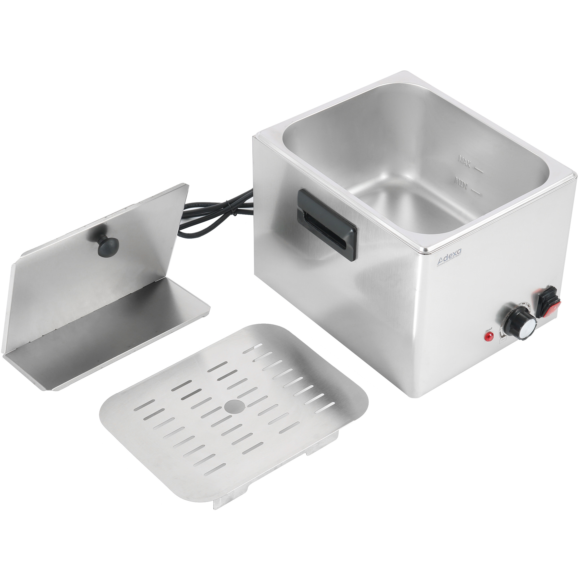 Original price was: 276,53 €.138,26 €Current price is: 138,26 €. (ei sis. KM)Vienas elektriskais komerciālais fritieris 12 litri 5kW galda virsmas | Adexa HEF83A
