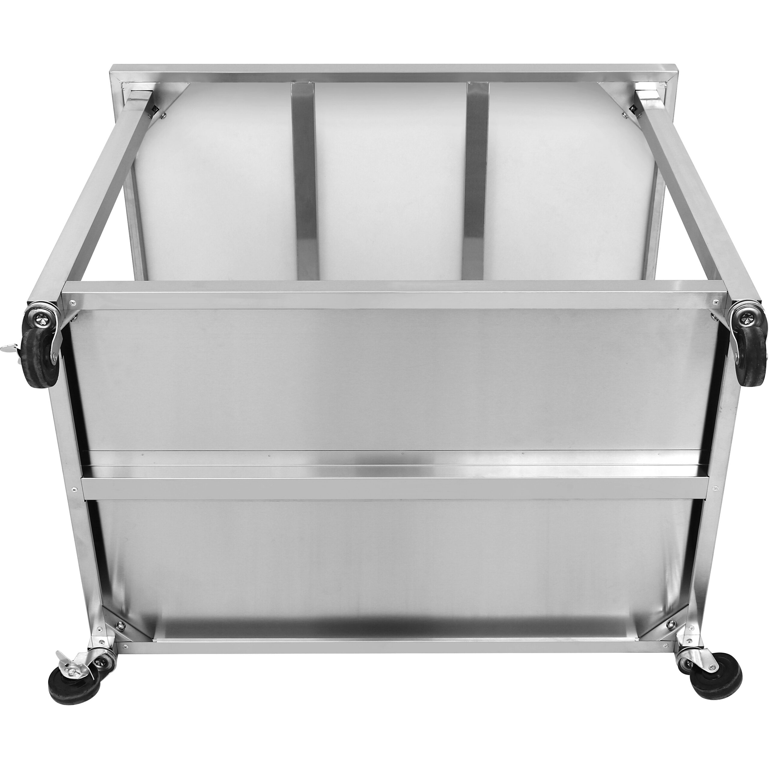 Original price was: 190,80 €.146,91 €Current price is: 146,91 €. (ei sis. KM) Šis ir lielisks cenas un kvalitātes attiecības mobilais komerciālais darba galds. Smagās slodzes, augstas kvalitātes, 201 AISI nerūsējošā tērauda galds, kas atbilst pārtikas pakalpojumu un ēdināšanas nozares augstajiem kvalitātes standartiem. Apakšējais panelis un uzlocītās malas papildu aizsardzībai. Atbilst starptautiskajiem higiēnas un tīrības standartiem. Izgatavots no nerūsējošā tērauda ar Scotch Brite apdari, lai atbilstu augstākajiem higiēnas standartiem. Pastiprināts darba virsma, kas izgatavota no divsienu nerūsējošā tērauda. Nestspēja līdz 500 kg. Ļoti augsta nestspēja. Lūdzu, skatiet sadaļu “Specifikācija” detalizētai informācijai. Ir noliktavā