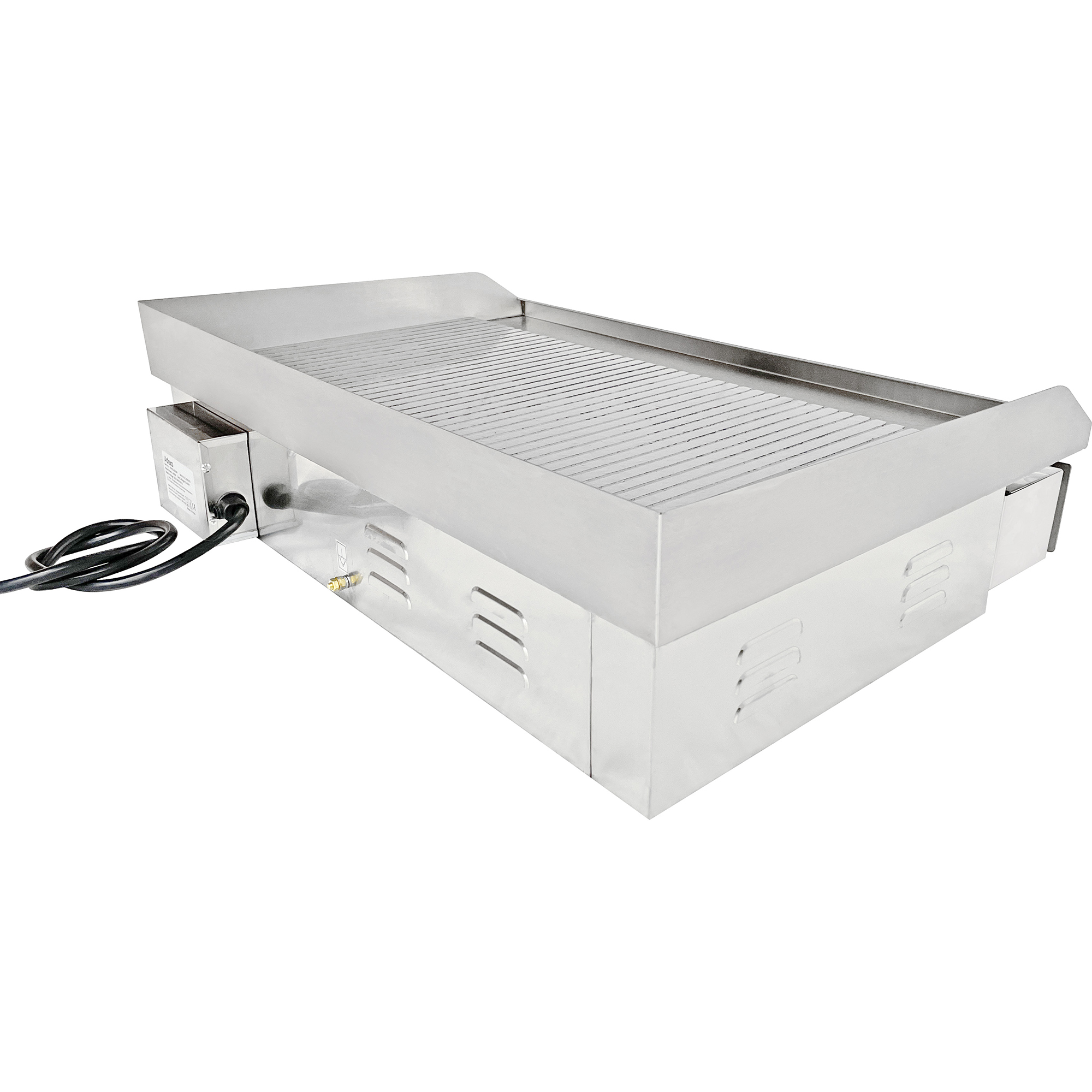 Original price was: 314,34 €.242,04 €Current price is: 242,04 €. (ei sis. KM) Šī lielā elektriskā galda virsmas pannas ir paredzēta maksimālam ātrumam un daudzpusībai. Divas neatkarīgi kontrolētas apsildes zonas ļauj jums ideāli pagatavot dažādus produktus. Iestatiet vienu sadaļu uz augstas temperatūras hamburgeriem, vistas gaļai vai bekonam, bet otru uz zemas temperatūras grauzdētiem maizes rullīšiem vai olām. Tas novērš viena produkta sadedzināšanu, kamēr citi vēl gatavojas. Ar šo komerciālo elektrisko cepamo virsmu jūs varat ātri pagatavot dažādas no jūsu populārākajām ēdienkartes piedāvājumiem! Neatkarīgi no tā, vai jūs gatavojat pankūkas, burgerus, ceptus siera rullīšus vai krustotas olas, šī izturīgā nerūsējošā tērauda pannas nodrošina nepieciešamo izturību un veiktspēju, lai paveiktu darbu. Biezā tērauda cepamā virsma vienmērīgi sasilst visā cepšanas laikā, nodrošinot vienmērīgus gatavošanas rezultātus, neatkarīgi no tā, kur novietojat ēdienu uz pannas virsmas. Grīdlīša plates priekšpusē esošs kanāls savāc taukus un novirza tos uz izņemamu tauku paplāti. Kad ir laiks sakopt, paplāte var tikt ātri noņemta un iztukšota. Lūdzu, skatiet sadaļu “Specifikācija”, lai iegūtu detalizētu informāciju. Ir noliktavā