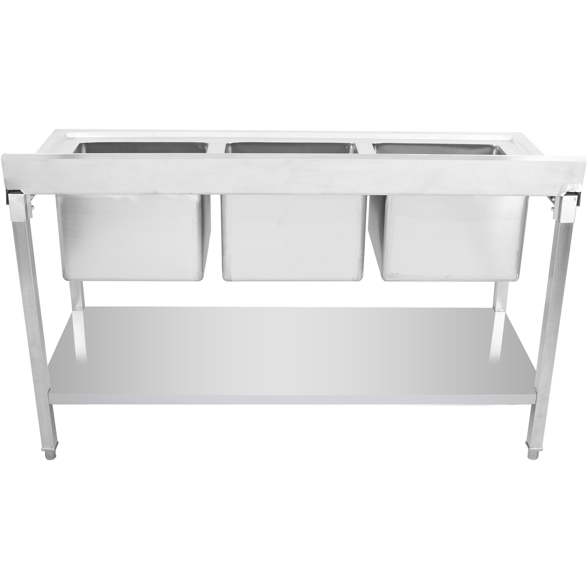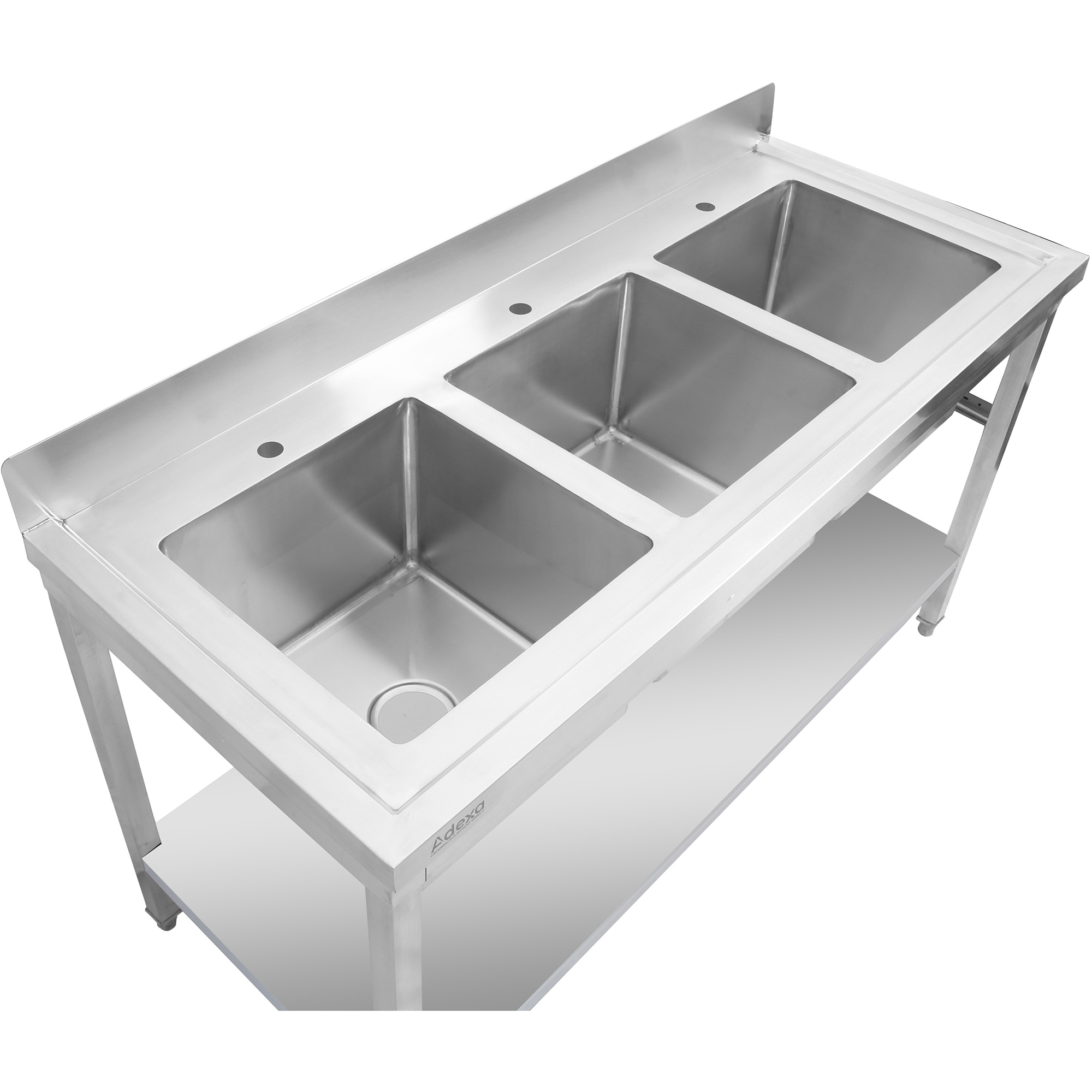 Komercijas izlietne Nerūsējošais tērauds 1500x600x900mm 3 bļodas Aizmugures panelis | Adexa STD345A