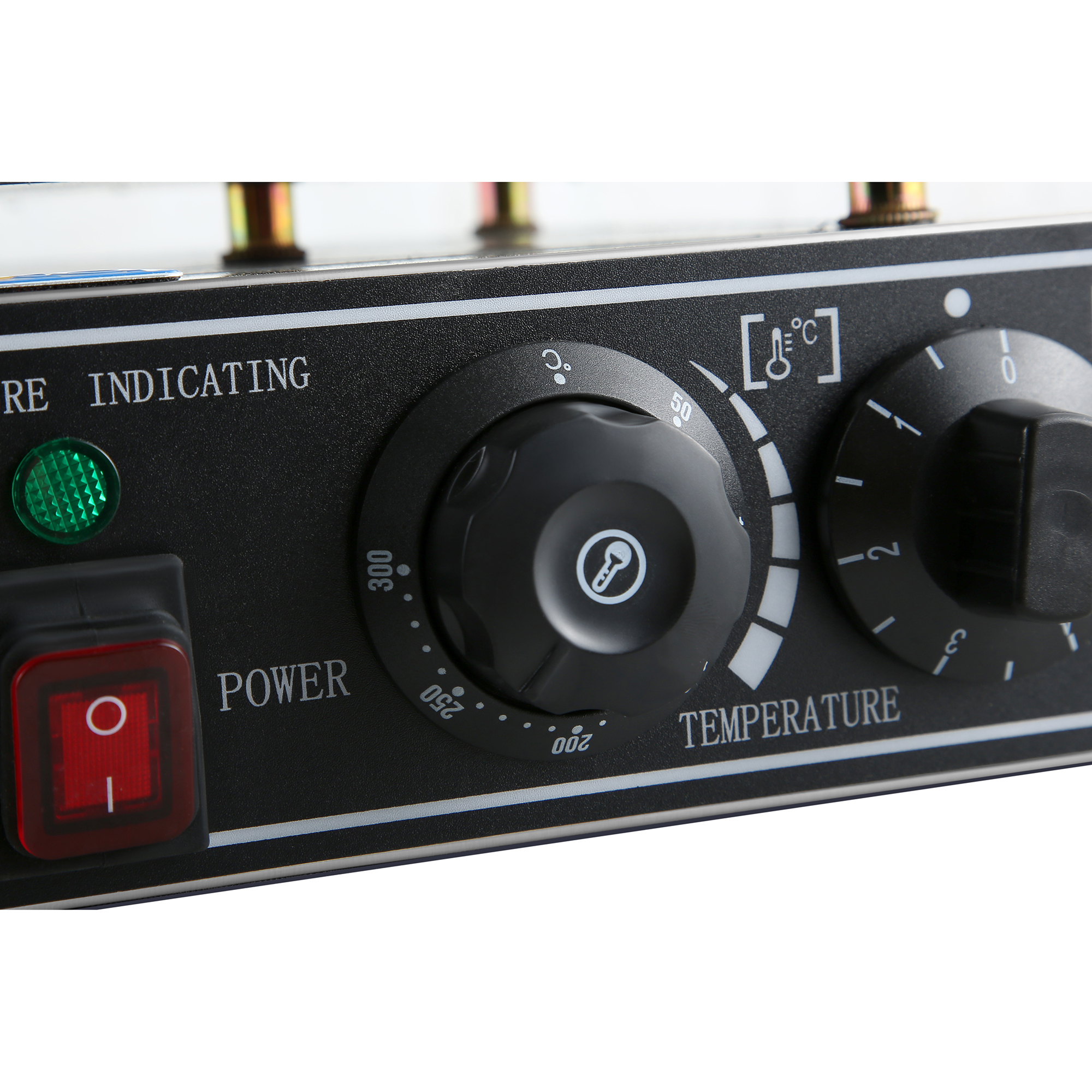 Original price was: 175,02 €.138,26 €Current price is: 138,26 €. (ei sis. KM) Profesionāla vafeļu mašīna, ideāli piemērota pašapkalpošanās brokastu bufetēm, viesnīcu brokastu bāriem, ēdnīcām vai jebkuram restorānam vai ēdināšanas iestādei, kas piedāvā vafeles savā ēdienkartē. Jauda: 1,6 kW Voltāža: 220-240V / 50Hz Alumīnija plāksne 210x210mm Nelīpošas plāksnes nodrošina vieglu vafeļu noņemšanu Ar pilotlampiņu Ar taimeri atgādināšanai Sīkāka informācija atrodama sadaļā “Specifikācija”. Ir noliktavā