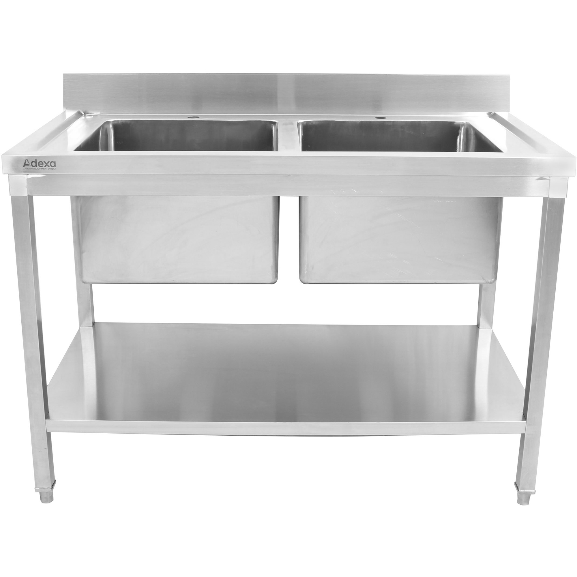 Komercslietojuma izlietne nerūsējošais tērauds 1200x600x900mm 2 bļodas ar atstarpes aizsargsieniņu | Adexa STD245A