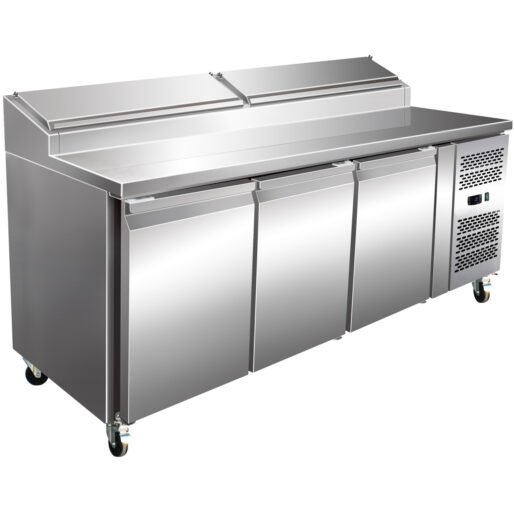 Original price was: 1599,14 €.1167,38 €Current price is: 1167,38 €. (ei sis. KM)Saladette Prep Letenis ar Stikla Virsu 1365x700x1350mm 3 durvis | Adexa S903CG