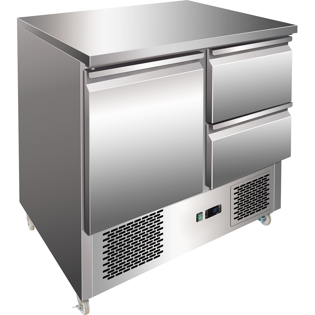 Original price was: 1976,39 €.691,74 €Current price is: 691,74 €. (ei sis. KM) Komerciāla ledusskapja sagatavošanas galds, kas izgatavots no spēcīga nerūsējoša tērauda ārpuses un iekšpuses ar 1 durvīm un 2 atvilktnēm. Pieejams ar 1 x regulējamu GN1/1 izmēra plauktu. Atvilktnes pieņem GN1/1 izmēra konteinerus, kas nav iekļauti. Vietu taupošs papildinājums jebkurā restorānā vai ēdināšanas uzņēmumā. Ietilpība: 257 litriCFC fluorescējošo gāzi nesaturošs aukstumaģents un putasAISI 304 nerūsējoša tērauda konstrukcijaElektroniskais termostats un digitāls LED temperatūras displejs precīzai kontrolei un vieglai nolasīšanaiAutomātiska atkausēšana un kondensāta ūdens iztvaikošanaMagnētisko blīvējumu var nomainīt bez jebkādiem instrumentiemApakša ar noapaļotām malām vieglai tīrīšanaiParedzēts, lai ietilptu GN1/1 pannās, konteineros un paplātēsElektroapgāde: 230V / 1N / 50HzTemperatūra: +2C līdz +8CAukstēšana: statiskaRiteņi iekļautiStandarta AK spraudnis ir uzstādītsDokumentiNoklikšķiniet šeit, lai lejupielādētu lietotāja rokasgrāmatuNoklikšķiniet šeit, lai lejupielādētu CE atbilstības deklarācijuLūdzu, skatieties sadaļā ‘Specifikācija’ detalizētai informācijai. Ir noliktavā