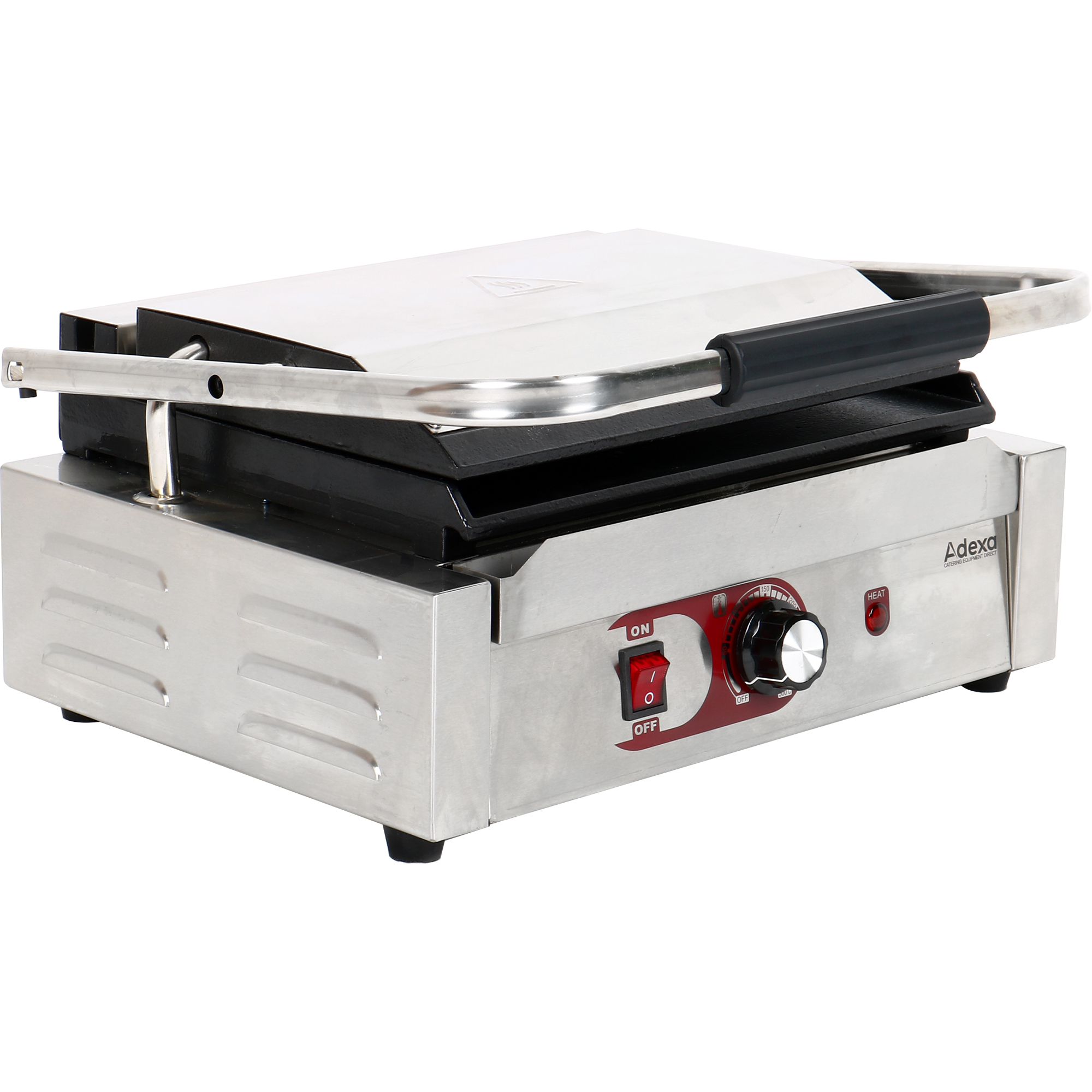 Original price was: 283,12 €.164,21 €Current price is: 164,21 €. (ei sis. KM) Grilējiet savus populārākos sviestmaizes līdz pilnībai ar šo daudzfunkcionālo kontakttosteri! Šis grils ir aprīkots ar gludām čuguna plāksnēm, lai vienmērīgi pagatavotu sviestmaizes un atstātu apetīti rosinošas grila svītras uz maizes. Termostata kontrole ļauj pielāgot temperatūru, lai jūs varētu pagatavot pie ideālās temperatūras, kamēr nerūsējošā tērauda ārējais rāmis nodrošina ilgu kalpošanas laiku. Lieliski piemērots panīnu, sviestmaižu, maizes, kā arī hamburgeru un kezediju cepšanai, šis daudzfunkcionālais grils papildinās jūsu iestādes piedāvājumu! Lūdzu, skatiet sadaļu “Specifikācija” detalizētai informācijai. Ir noliktavā