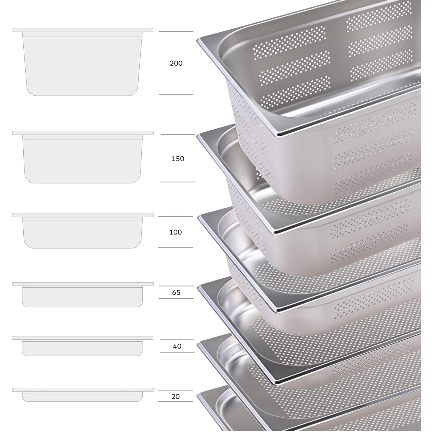 Nerūsējošā tērauda Gastronorm katls ar perforāciju GN1/1 Dziļums 150mm | Adexa 8116P
