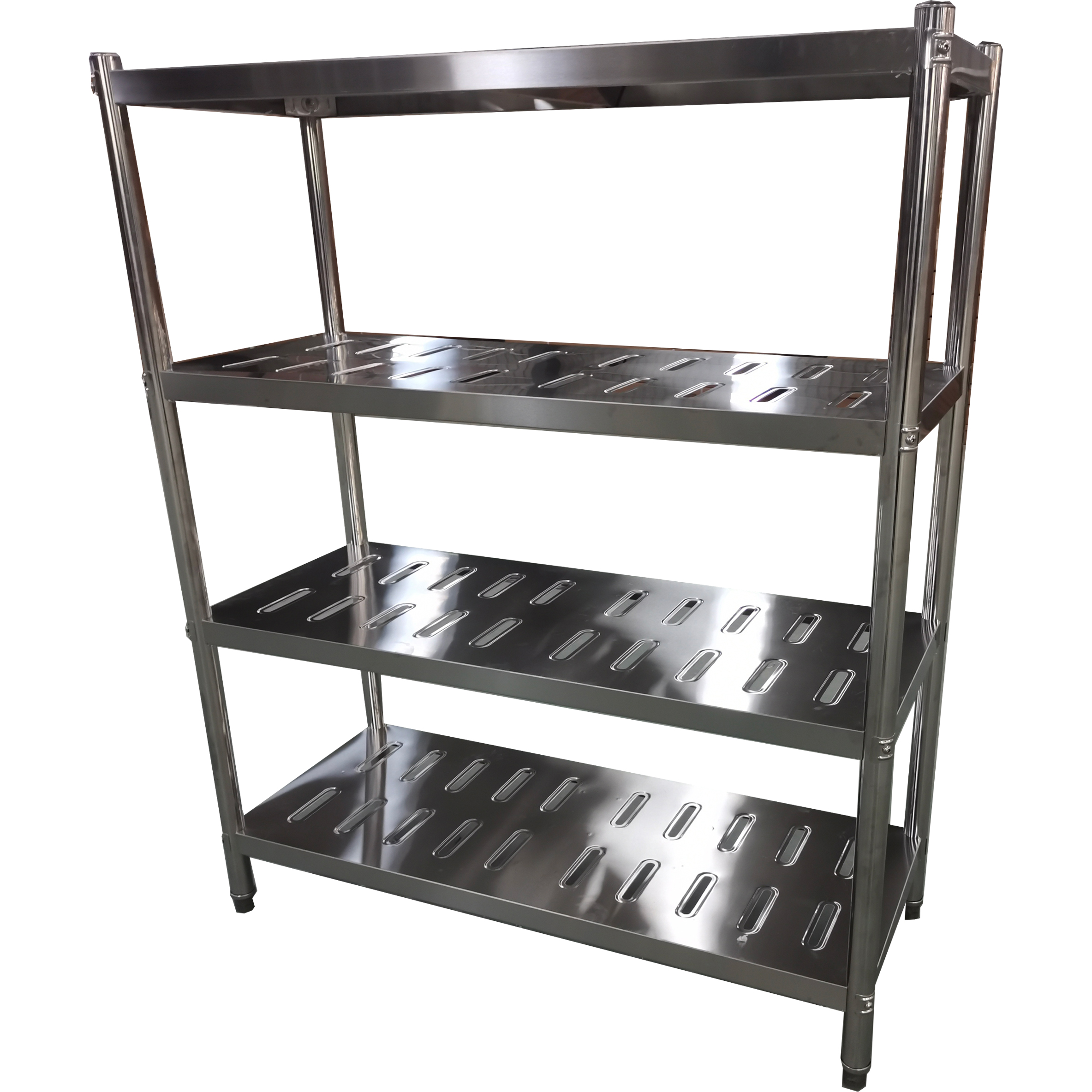 Nerūsējošā tērauda plaukti ar apaļām kājām 4 plaukti ar caurumiem | Adexa QHRSP1505
