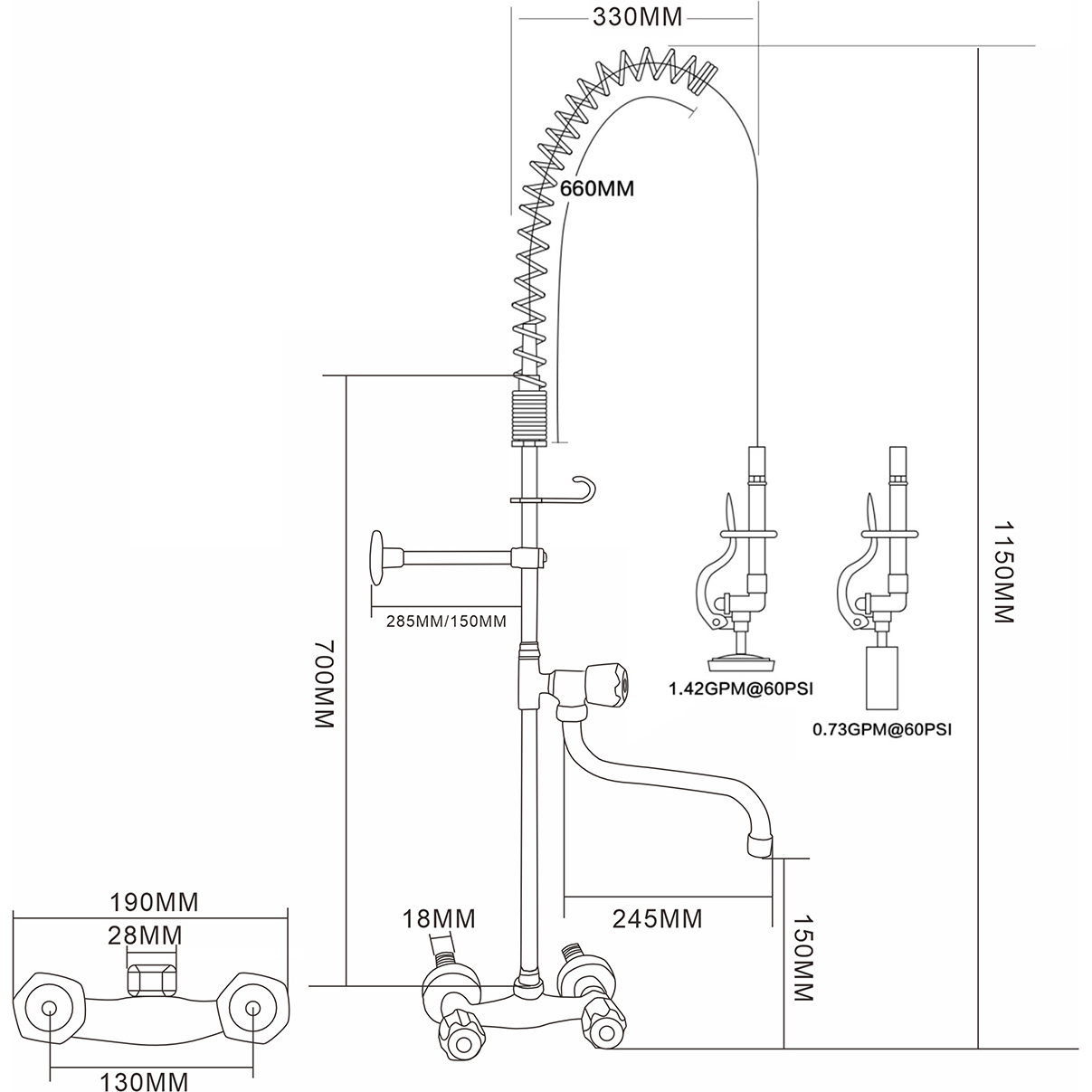 Original price was: 375,77 €.172,86 €Current price is: 172,86 €. (ei sis. KM) Profesionāla un ārkārtīgi izturīga priekšnoskalošanas izsmidzināšanas iekārta, ideāli piemērota ēdināšanas, komerciālās virtuvēs, restorānos un viesnīcu pielietojumiem. Sienas stiprinājuma veids. Dubultā ieplūde (karstais un aukstais ūdens). Smagi nostiprināta nerūsējošā tērauda konstrukcija. Ir noliktavā