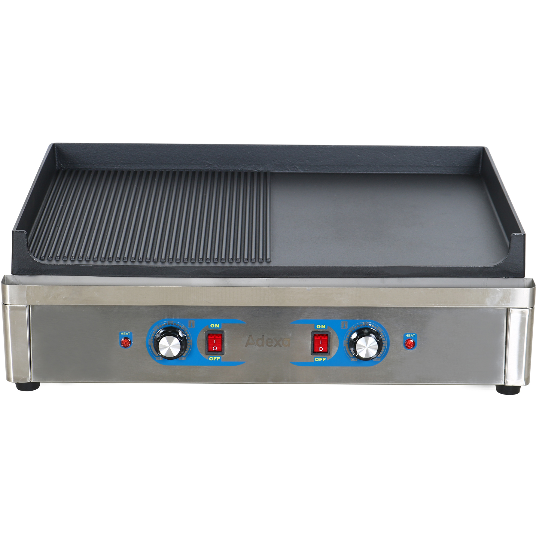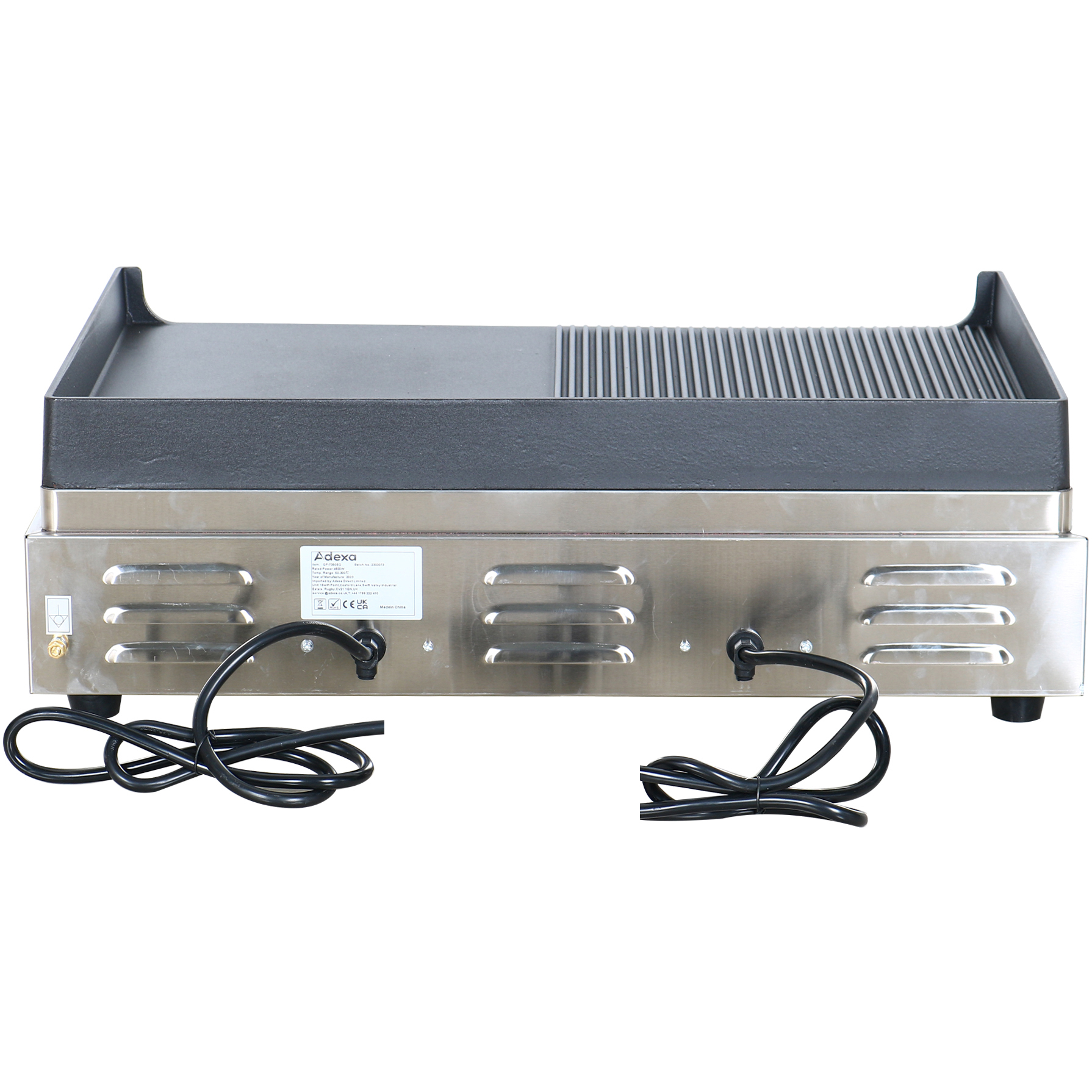 Profesionāls Elektriskais Grils 2 zonas 4.6kW Gluda/Rievota Čuguna Virsma | Adexa GP7050EGW