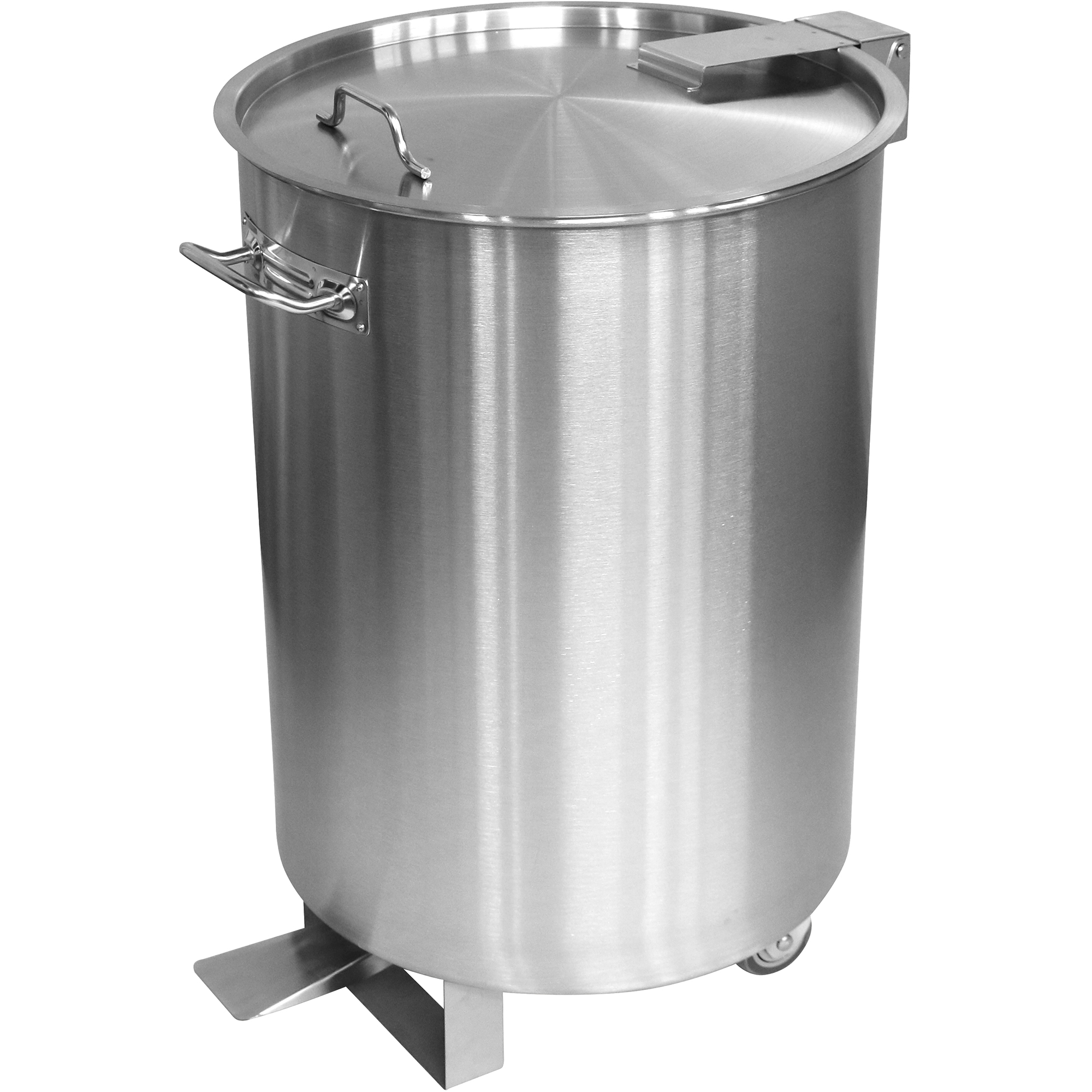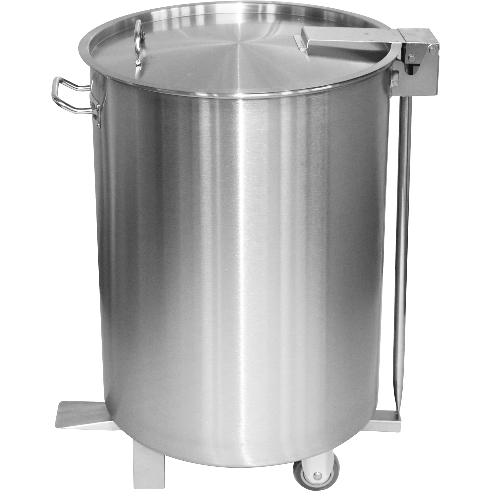 Profesionāls nerūsējošā tērauda atkritumu tvertne ar vāku un riteņiem un pedāli 95 litri | Adexa SDCP95