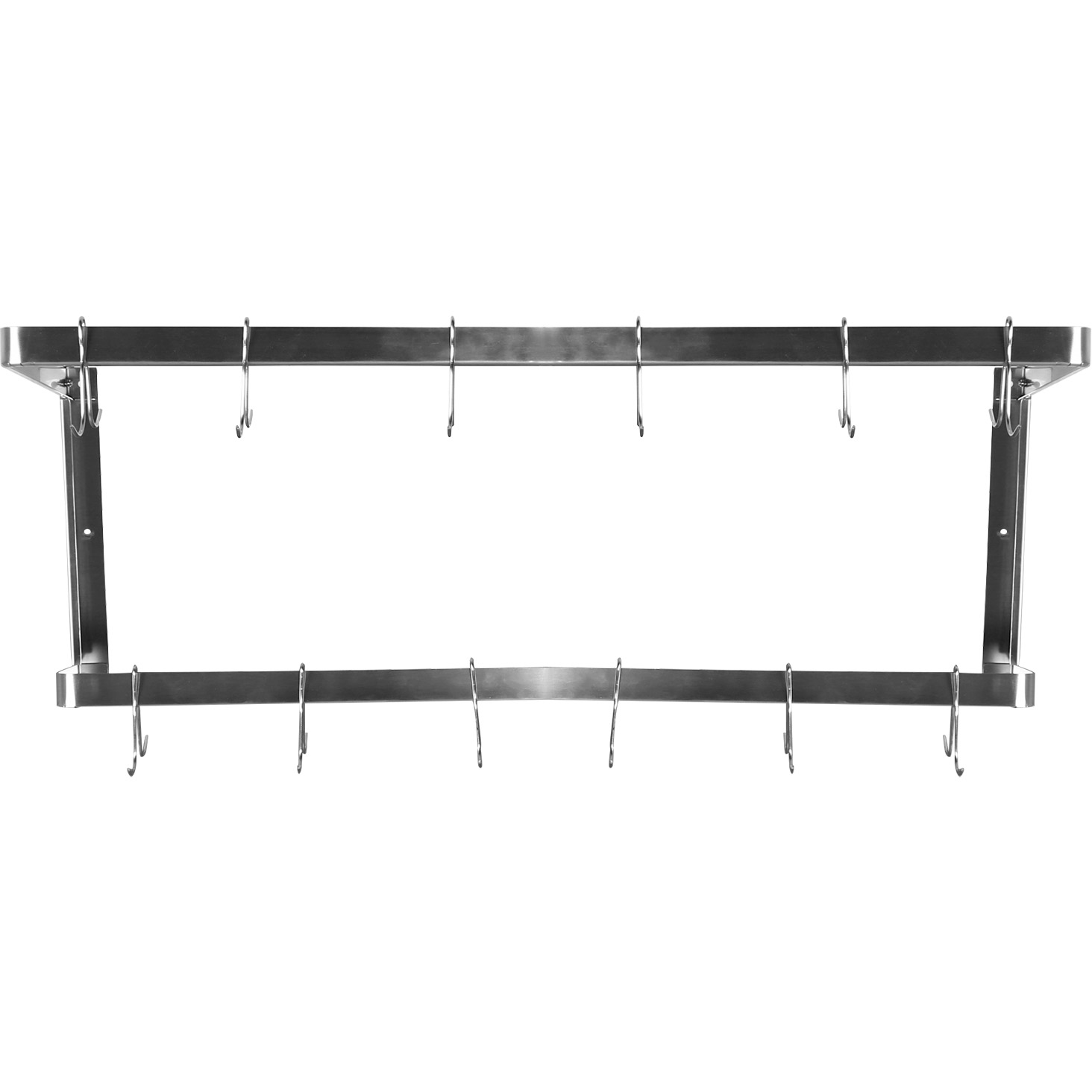 Original price was: 94,67 €.38,81 €Current price is: 38,81 €. (ei sis. KM) Šis komerciālais nerūsējošā tērauda sienas katlu turētājs ir ideāli piemērots jebkuram lielam restorānam vai ēdināšanas iestādei. Izmantojiet komplektā iekļautos āķus, lai uzglabātu savus lielos katlus un pannas, kā arī bieži lietotos traukus un citas piederumus. Šim turētājam ir arī nerūsējošā tērauda plaukts augšpusē, kas ļauj uzglabāt tīrus šķīvjus vai populāras sastāvdaļas un garšvielas. Ir noliktavā