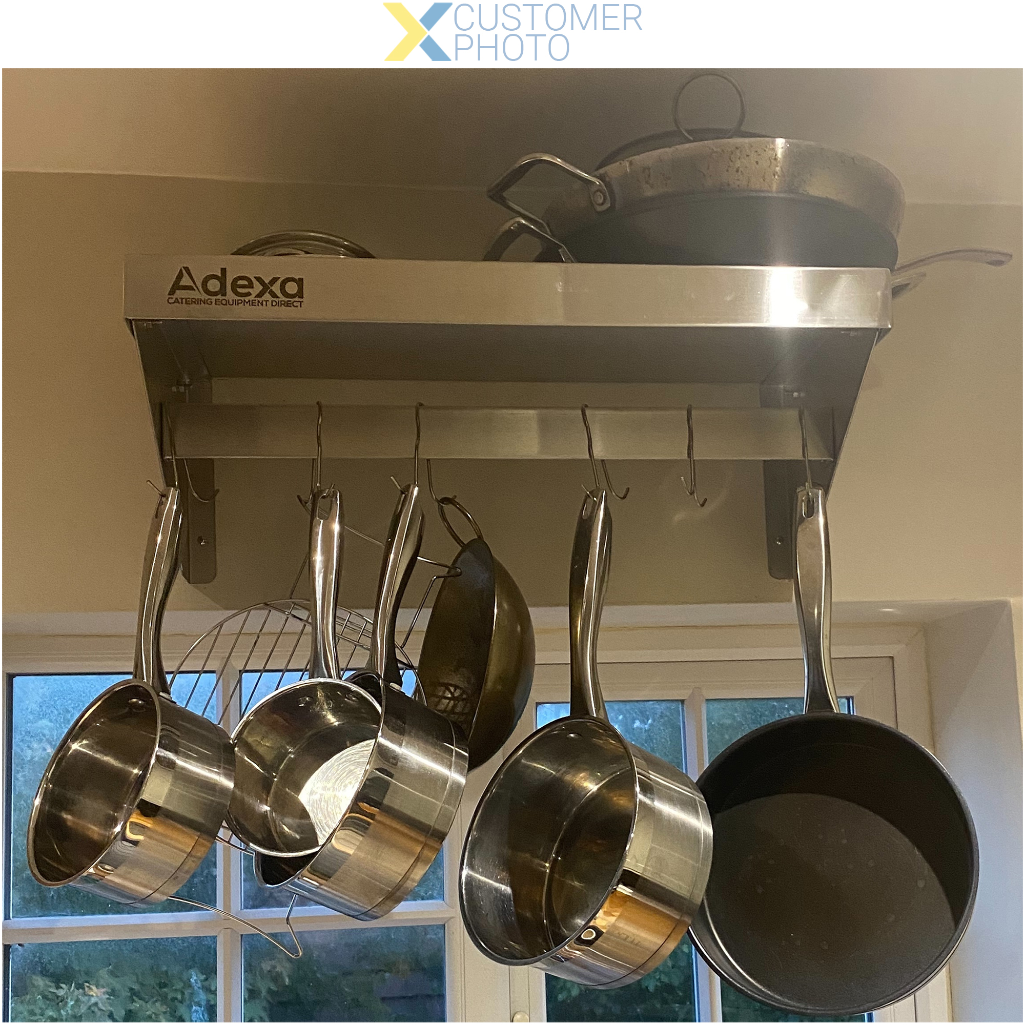 Sienas plaukts ar katlu turētāju 6 āķiem no nerūsējošā tērauda 600x300x254mm | Adexa WHPR603025