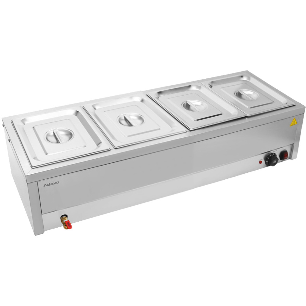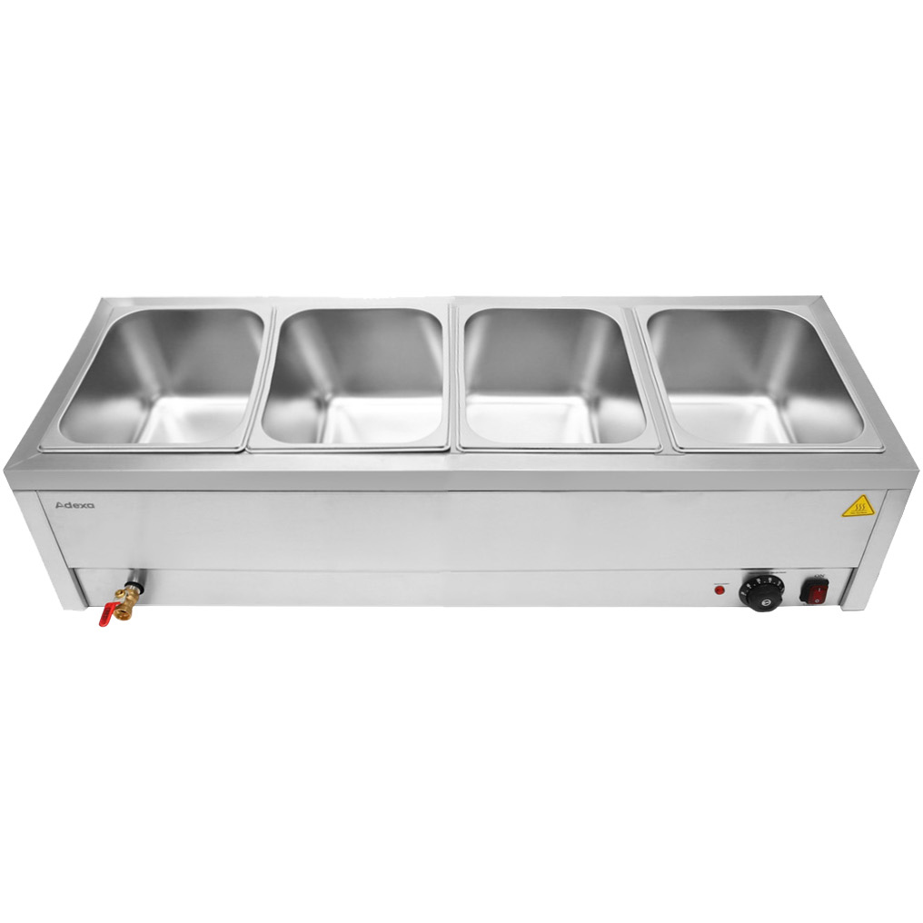Tirdzniecības Bain Marie 4xGN1/2 konteineri un vāki Ar iztukšošanas krānu | Adexa BR11045