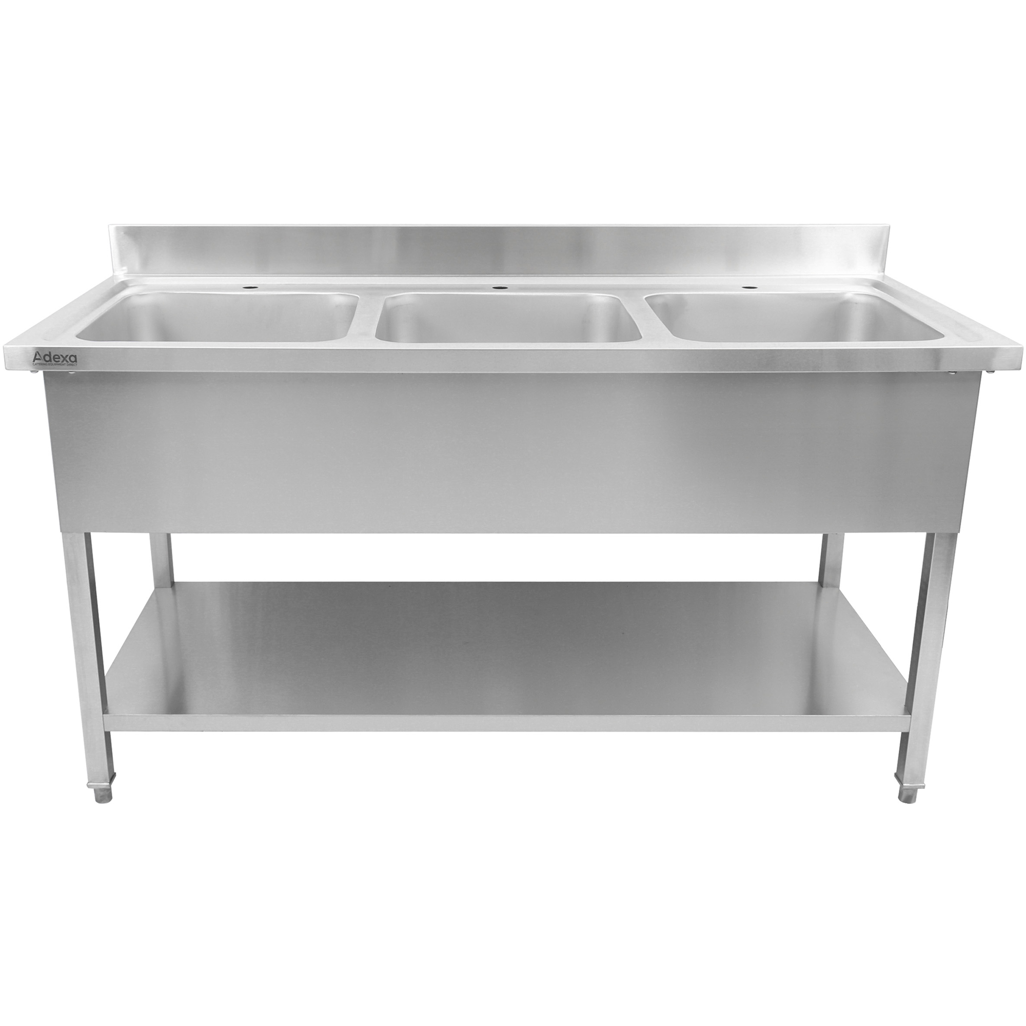 Tirdzniecības izlietne Nerūsējošais tērauds 1800x700x900mm 3 bļodas Aizmugurējā daļa | Adexa DSA345