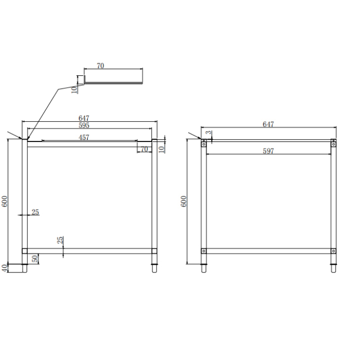Iekārtu statīvs/Zema galdiņš ar 3 paceltiem sāniem 1200x760x600mm | Adexa ES41876120