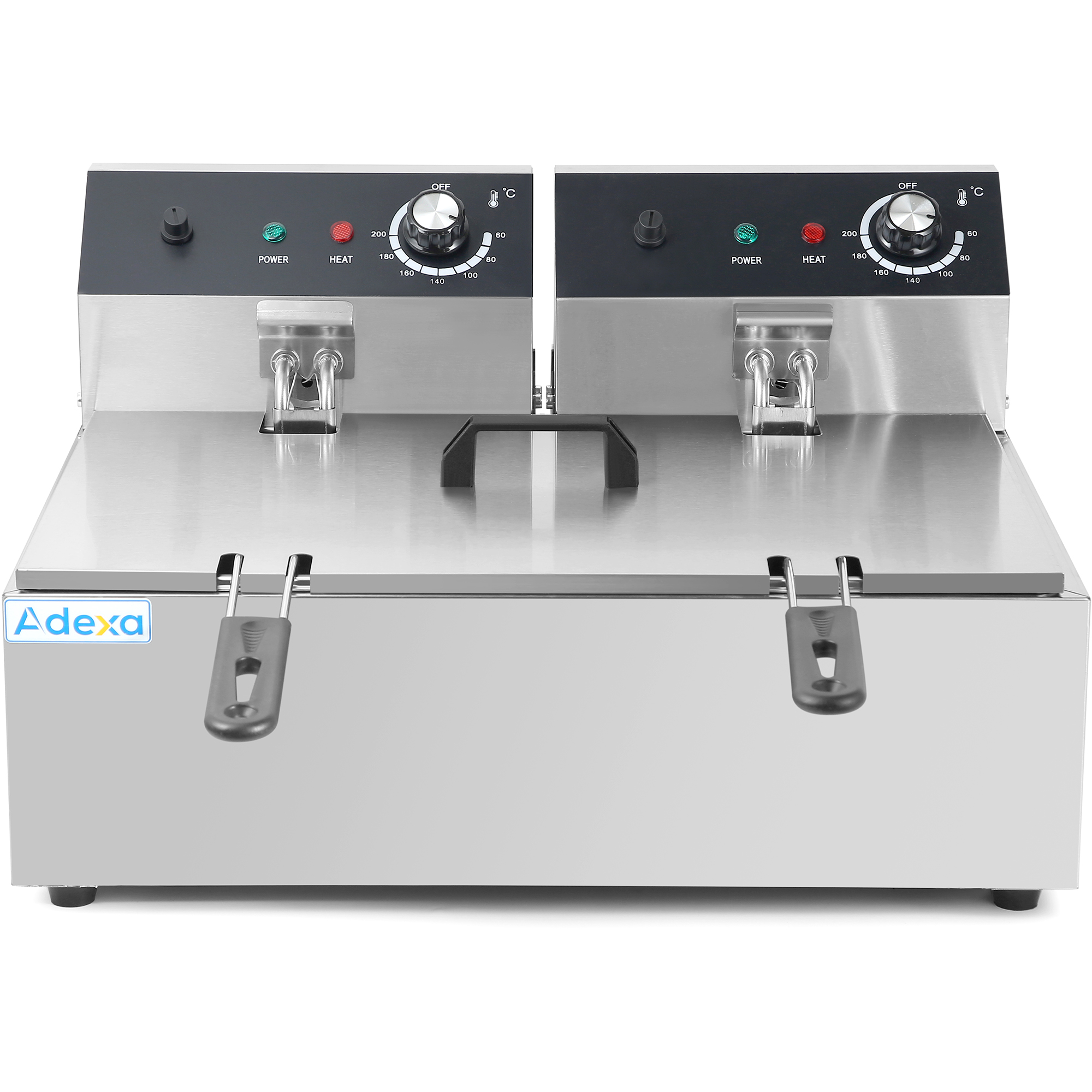 Original price was: 1383,54 €.1037,66 €Current price is: 1037,66 €. (ei sis. KM)Komerciāla dvīņu fritēšanas ierīce Elektriskā 14 litri 2.5+2.5 kW darba virsmas | Adexa WHCD171